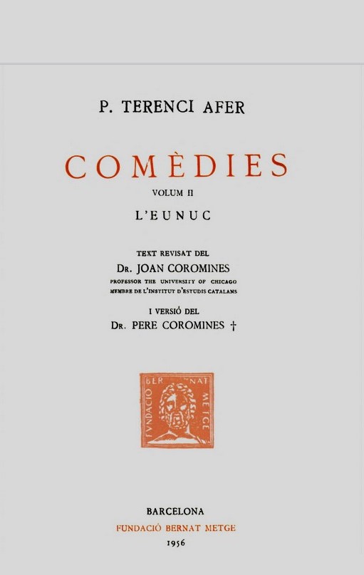 (90) P. Terenci Afer, Comèdies. Volum II. L’Eunuc. Text revisat del Dr. Joan Coromines ...