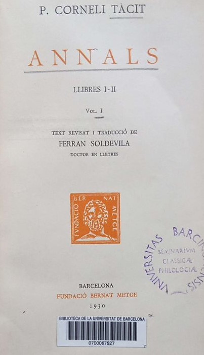 Ferran Soldevila (1894-1971), en canvi, s’encarregà de la traducció del primer volum dels Annals de Tàcit que aplegava els llibres i i ii de l’obra de l’historiador romà (Nr. 91). Soldevila fou professor d’història a l’Escola de Bibliotecàries i també fou, breument, professor de la mateixa disciplina a la Universitat de Barcelona. Aquesta fou la seva única contribució a l’empresa.