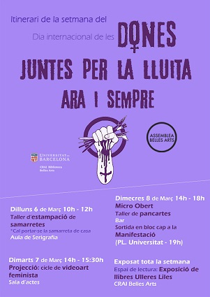 Exposició celebrada amb motiu del Dia Internacional de la Dona o Dia de la Dona Treballadora del 2017 i gràcies a la col·laboració i suport de la Comissió d’Igualtat de la Facultat de Belles Arts i al Col·lectiu Feminista de BBAA. Amb fons del CRAI Biblioteca de Belles Arts i altres CRAI Biblioteques de la Universitat de Barcelona.