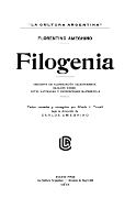 | Una edició de Filogenia de 1915. Es tracta de la més antiga, després de la príncep (1884). Forma part del catàleg de La Cultura Argentina, una col·lecció dirigida por José Ingenieros (de qui es parla més endavant) destinada a difondre els clàssics del país, tan literaris com científics. | ![]() |