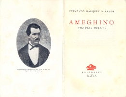 | La biografia Ameghino. Una vida heroica (1951) escrita per l’arqueòleg i historiador argentí Fernando Márquez Miranda (1897-1961). Probablement es tracta de la més equànime publicada fins aleshores. | ![]() |