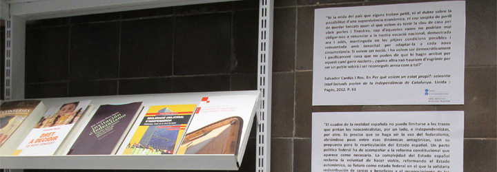 Els esdeveniments polítics dels darrers anys (2010-2014) ens han immers en un procés, si més no, de reflexió política, econòmica i sociològica del qual el CRAI Biblioteca d'Economia i Empresa vol fer-ne ressò amb aquesta exposició on es fan palesos, des de diferents àmbits, diversos punts de vista i opinions.