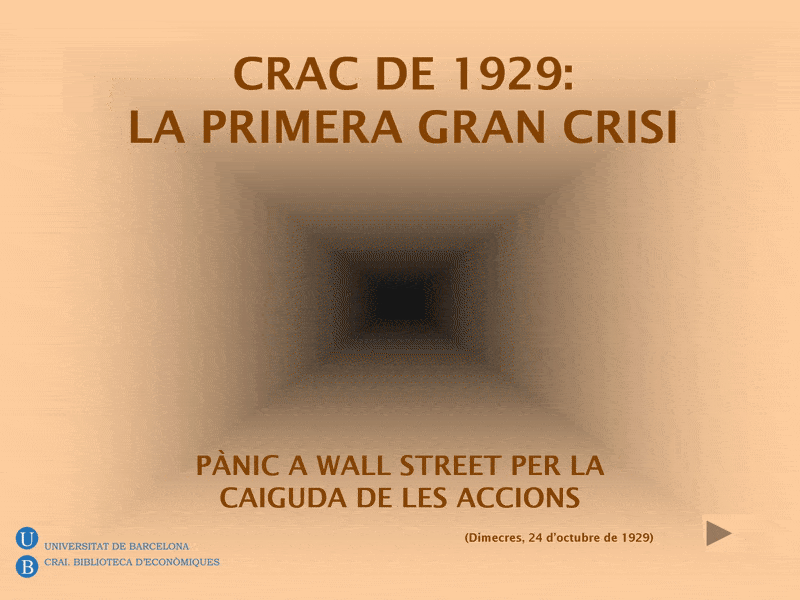 80 anys després del crac de la Borsa de Nova York de 1929, i degut a la crisi que patim actualment, la Biblioteca d’Econòmiques ha volgut mostrar amb aquesta exposició virtual, a grans trets, el que es coneix com la “gran crisi”, l’original, i conèixer-ne algunes dades i opinions sense pretendre buscar cap referent ni fer comparacions.