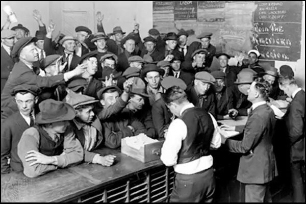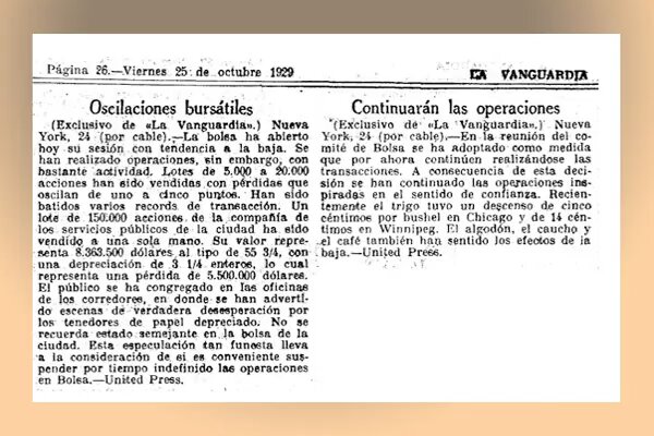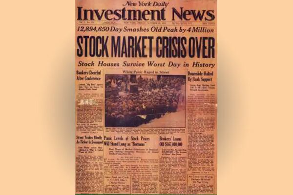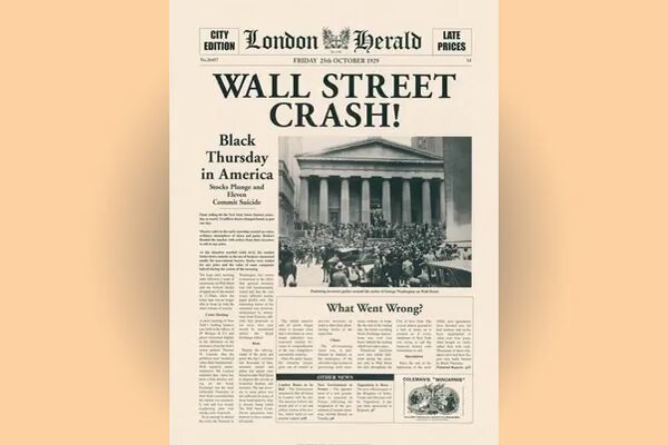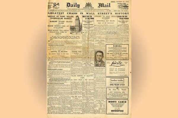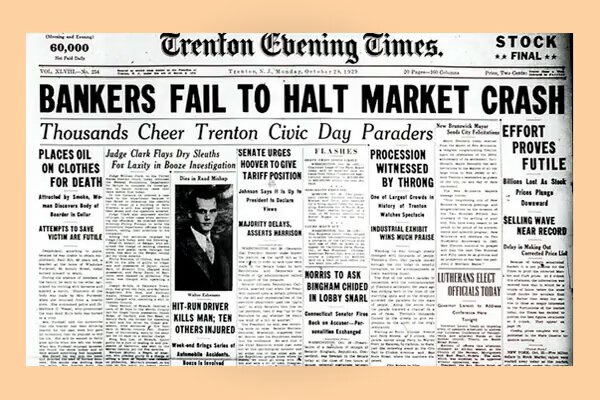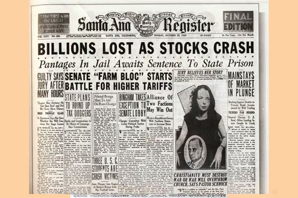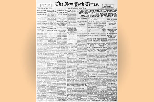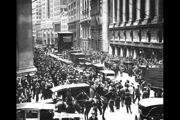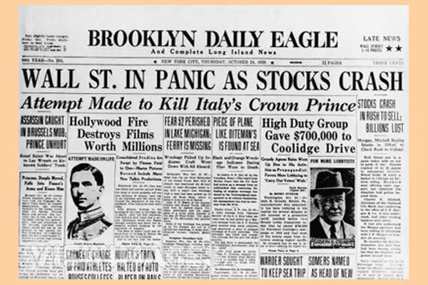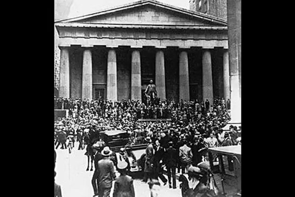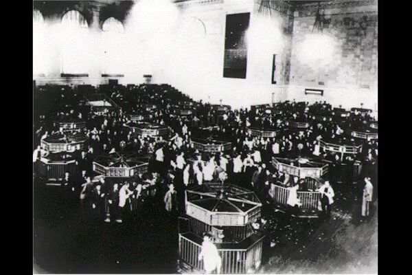 El dijous 24 d'octubre de 1929, conegut com a dijous negre, 12 milions d'accions es van posar a la venda a la Borsa de Nova York. El dimarts 29 d'octubre la borsa es va col·lapsar amb repercussions en els mercats borsaris de tot el món.
