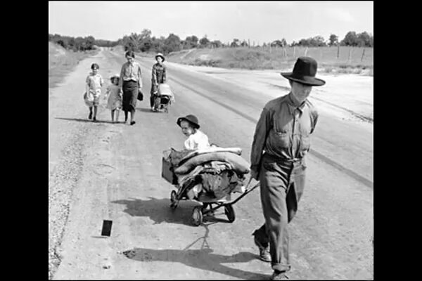 El film per excel·lència que representa aquella època és Grapes of wrath (Las uvas de la ira, 1940) de John Ford, basada en la novel·la del mateix títol de John Steinbeck. En ella es parla de l'èxode de les famílies d'agricultors cap a l'oest per buscar feina a les grans plantacions.