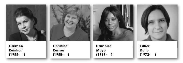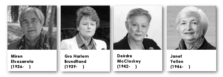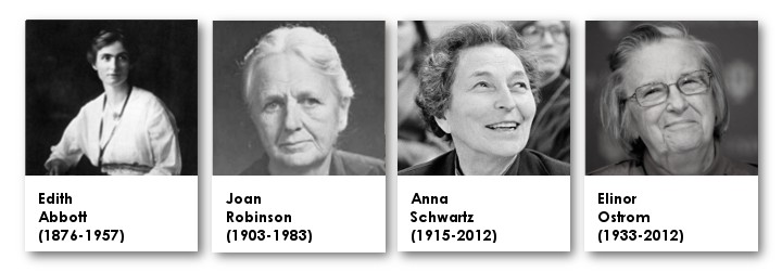 L'Economia, a priori, sembla una ciència dominada pels homes. Si mirem la relació dels guardonats amb el Premi Nobel d'Economia des de 1969 fins al 2008, són 62 premiats (alguns compartits) i no hi ha ni una sola dona. No és que les dones no s'hagin dedicat a aquesta ciència, és que han quedat en un segon pla i sovint el reconeixement se l'han endut homes del seu entorn o que van basar-se en els seus estudis i van fer la formulació final d'una teoria.