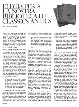 (*) Carles Miralles, “Elegia per a la nostra biblioteca de clàssics antics”, Serra d’Or IX, 10 (octubre) (1967), 52-54.