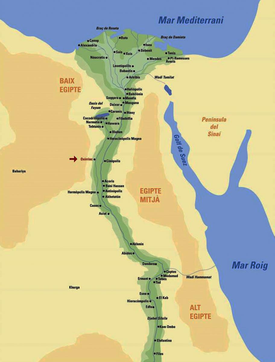 Mapa d’Egipte amb la localització d’Oxirrinc