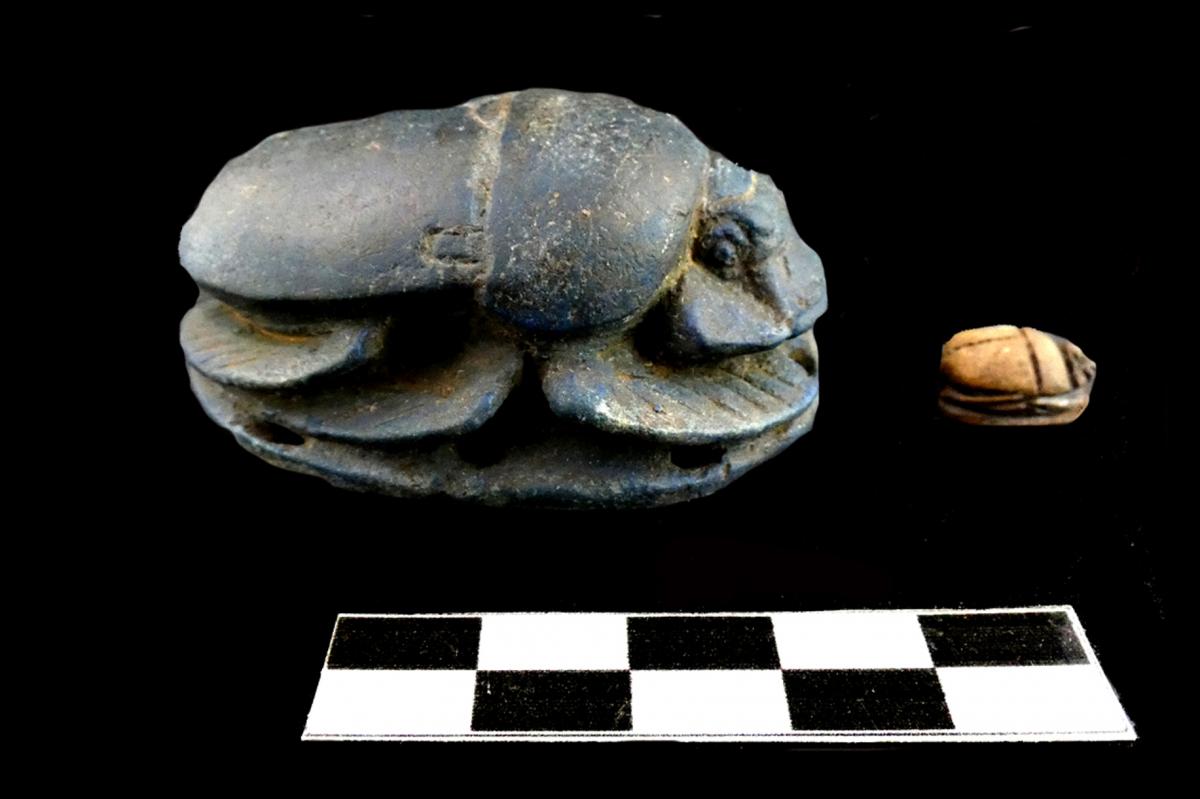 Un dels amulets funeraris més poderosos era l’escarabeu del cor. El difunt enterrat a la tomba 54 en conservava un magnífic exemplar entre les benes.