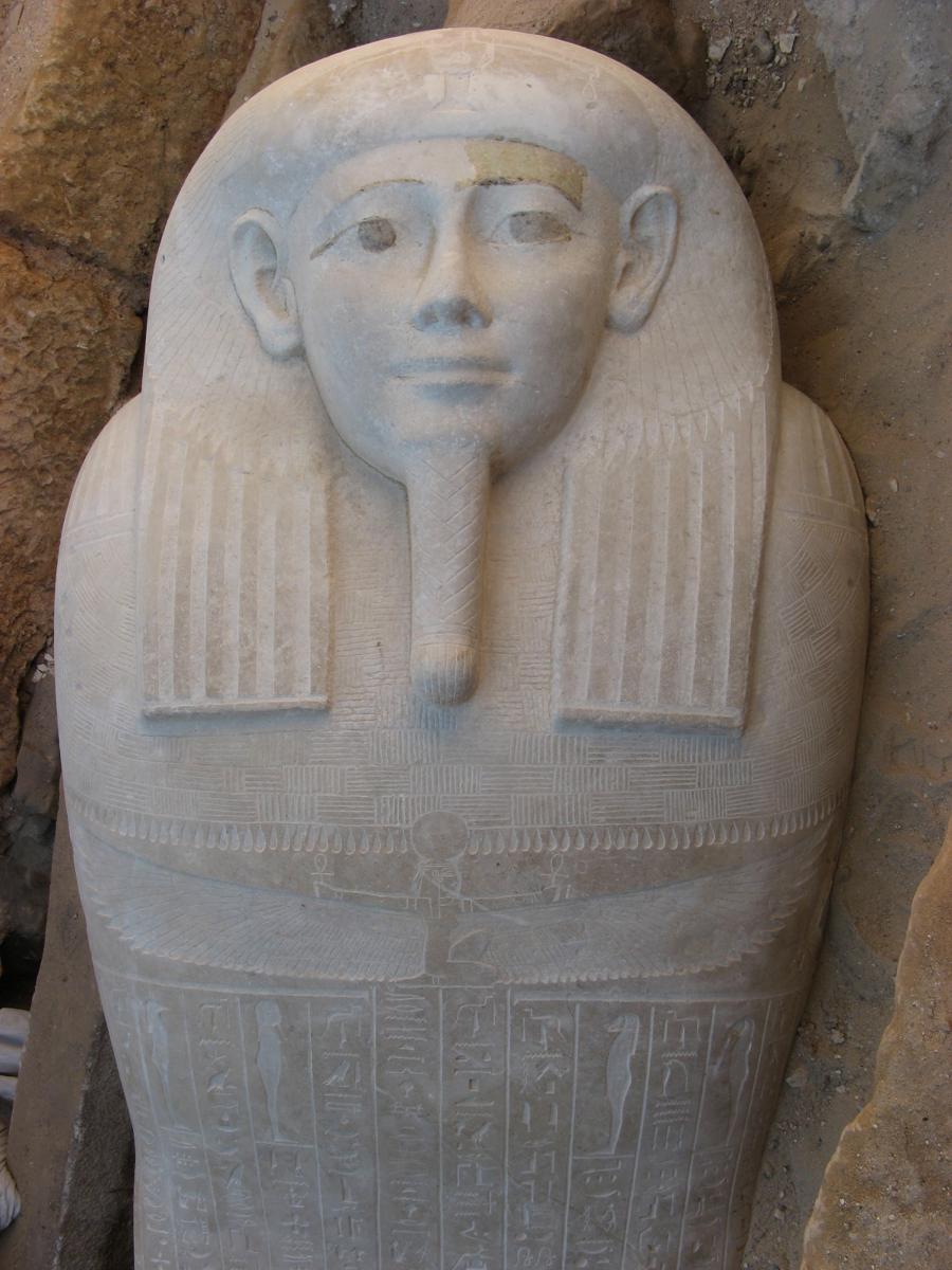 Durant la campanya de 2021 va tenir lloc una troballa excepcional: una tomba intacta formada per una cambra amb dos nínxols a l'est i a l'oest. Aquests espais s'usaven per ubicar-hi els vasos canopis, que eren les gerres que contenien les vísceres momificades. El sarcòfag antropomorf, de pedra, contenia un individu momificat amb amulets protectors, i rere el cap del sarcòfag hi havia un recipient ceràmic i centenars de figuretes d’uixebtis. La funció d'aquestes petites escultures era la d'actuar com a "servents" màgics per servir al difunt en el més enllà.