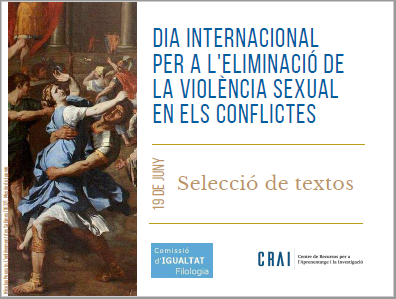 La Comissió d'Igualtat de la Facultat de Filologia i el CRAI Biblioteca de Lletres recorden la significació d‘aquesta data amb una exposició virtual que, junt a literatura d‘autors i autores de països diferents amb relats punyents de violència sexual sobre la dona, mostra treballs acadèmics de l‘alumnat de la Universitat de Barcelona relacionats amb els drets humans i la violència de gènere.