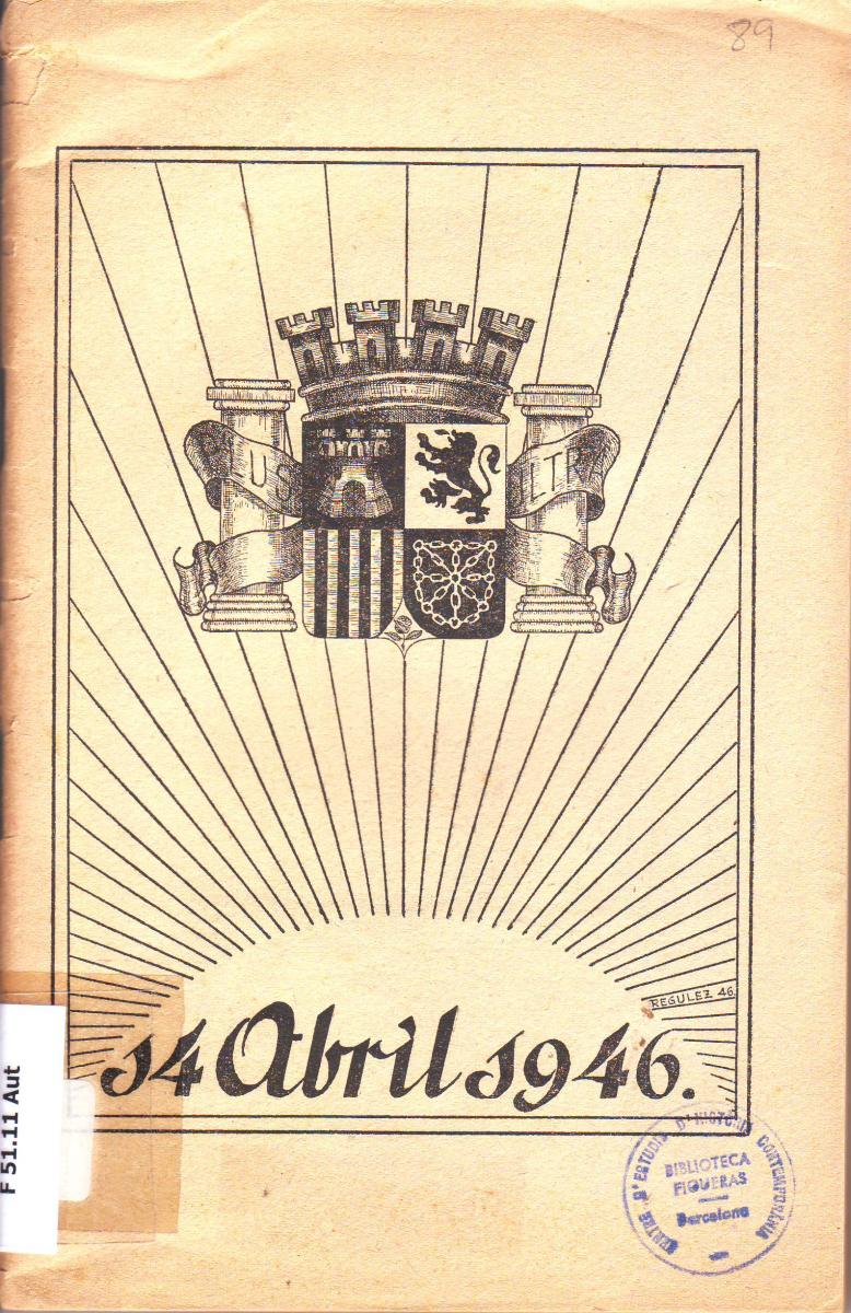 - ESPANYA. REPUBLICA (2ª. : 1931-1939). Les Cortes de la République Espagnole dénincent les fictions politiques du franquisme. París, [1946]. [CF 51.111 Cor]