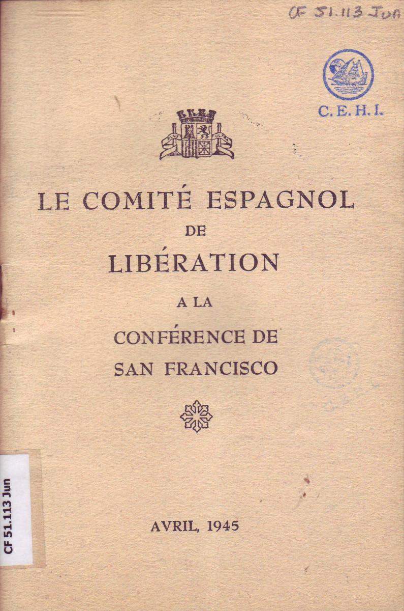 - COMITÉ ESPAGNOL DE LIBÉRATION. Le …. À la Conférence de San Francisco, avril 1945. Marsella, 1945. [CF 51.113 Jun]