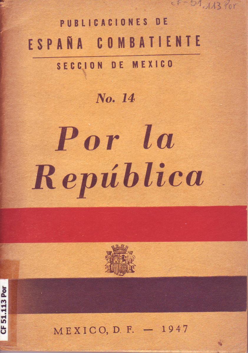 - ESPAÑA COMBATIENTE. SECCIÓN DE MÉXICO. Por la República. Mèxic, 1947. [CF 51.113 Por]