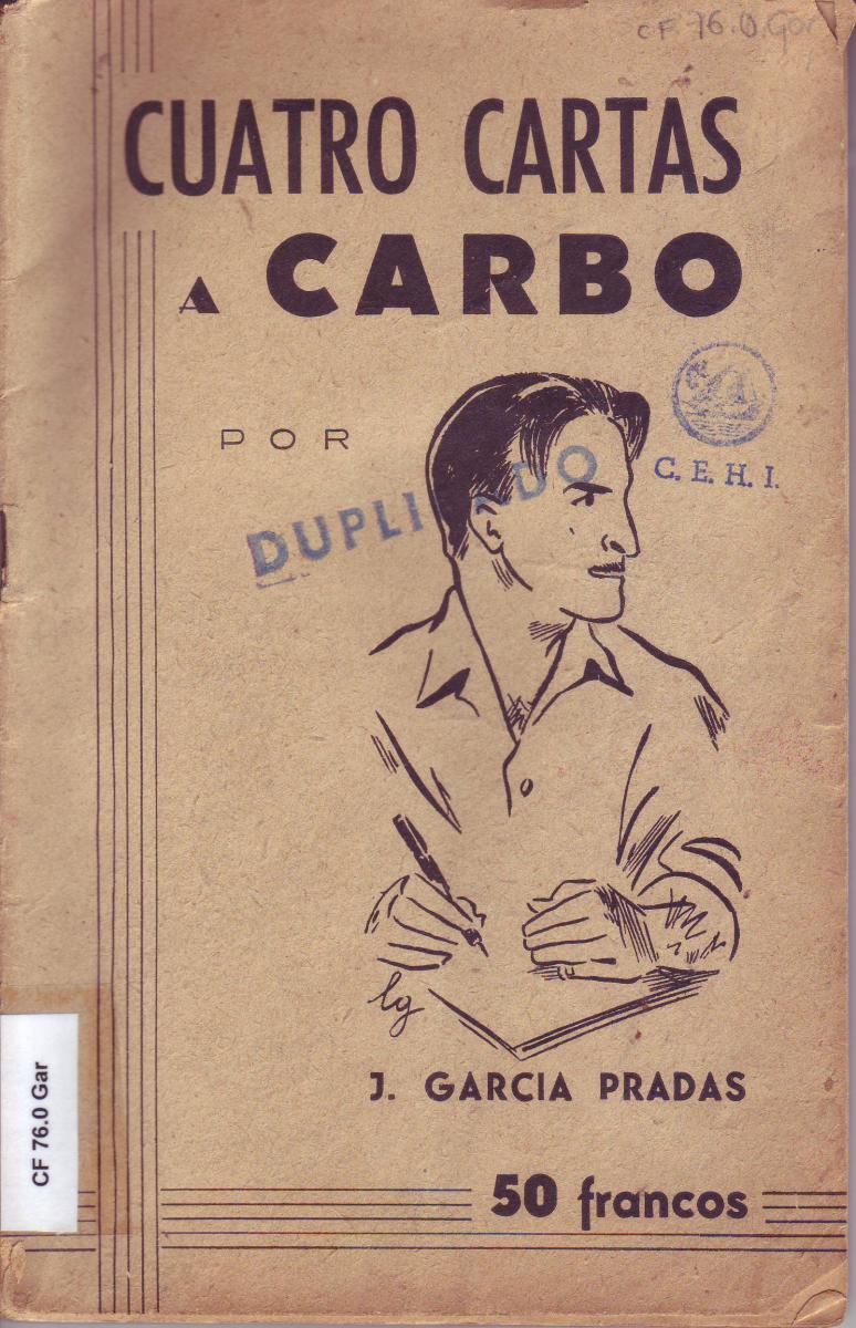 - GARCIA PRADAS, J. Cuatro cartas a Carbó. [Toulouse], [1948]. [CF 76.0 Gar]