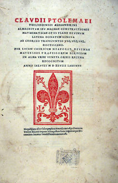 Ptolemeu, Claudi. Claudii Ptolemaei ... Almagestum seu Magnae constructionis mathematicae ... In vrbe Veneta ... & calcographica : Luceantonii Iu[n]ta officina aere proprio ac typis excussa, 1528.