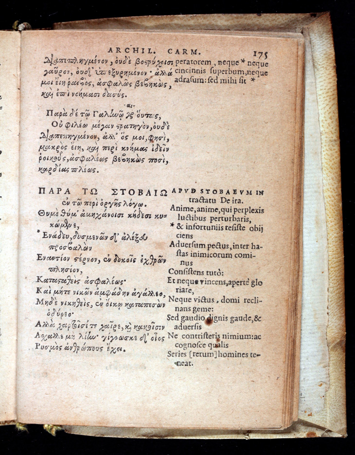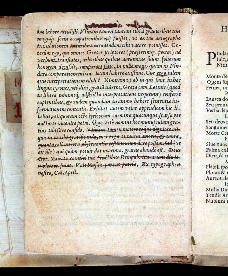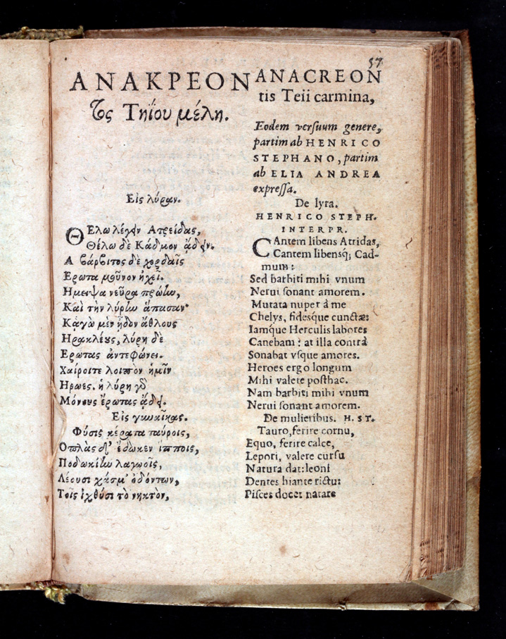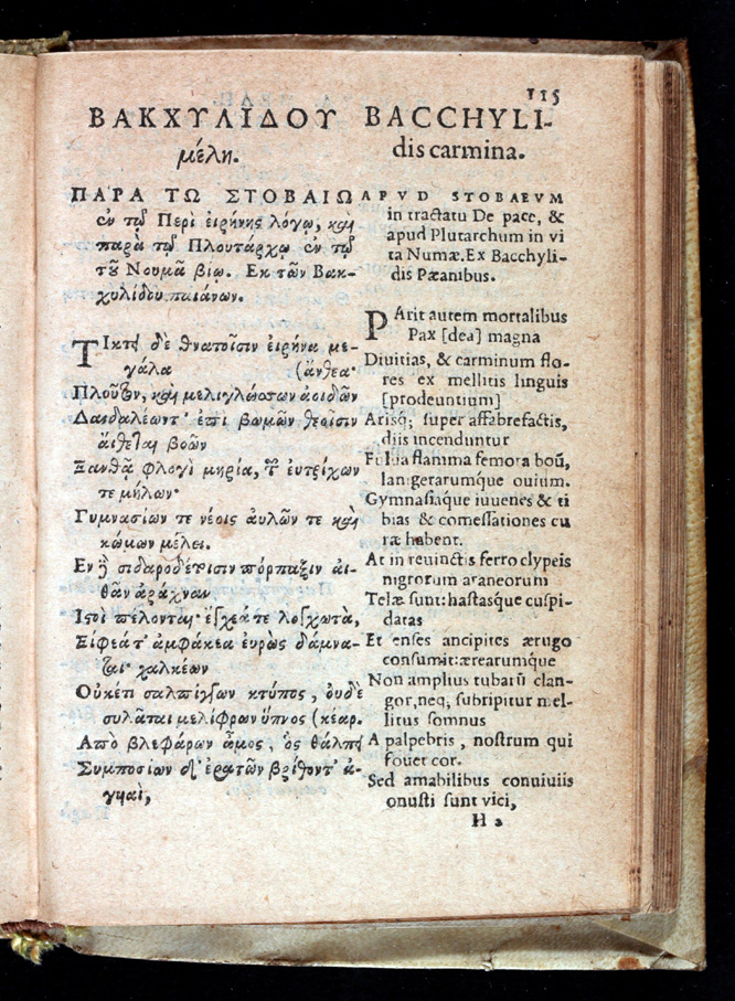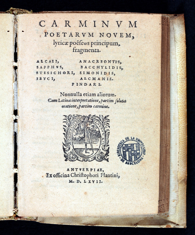 Títol: Pindari Olympia, Pythia, Nemea, Isthmia. Caeterorum octo lyricorum carmina, Alcaei, Sapphus, Stesichori, Ibyci, Anacreontis, Bacchylidis, Simonidis, Alcmanis. Nonnulla etiam aliorum. Omnia graecè & latinè. Pindari interpretatio noua est eaque ad uerbum. Caeteri partim ad uerbum, partim carmine sunt redditi.