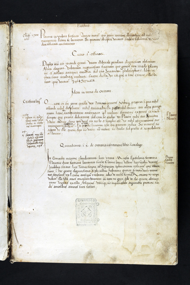 Antic possessor: Pere Miquel Carbonell i Soler (1434-1517), arxiver de l’Arxiu Reial de Barcelona, que el compra a una llibreria de Venècia el 1486.