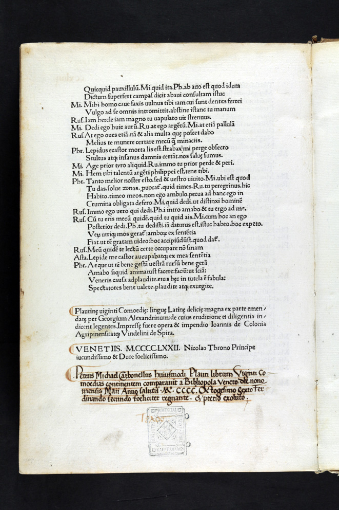 Impressors: Wendelin von Speyer (Vindelinus de Spira); Johannes de Colonia.