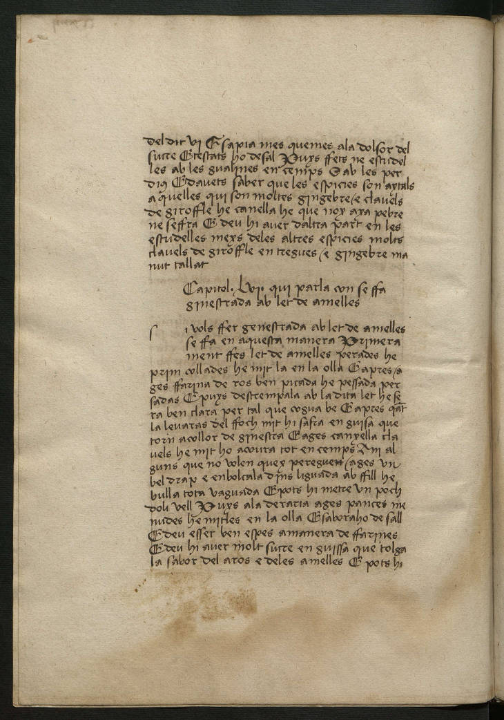 Anselm Turmeda. Llibre dels bons amonestaments (fragment).Manuel Dies de Calatayud. Llibre dels cavalls; Llibre de les mules. Tractat de tot lo cos de la lluna. Estatuts de l’orde de la Gerra. Tractats de falconeria. Flors del Tresor de beutat. Llibre de totes maneres de confits. Llibre de Sent Soví. Catalunya, segle XV.