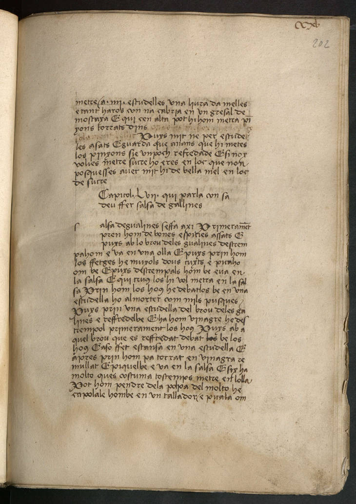 Compilació catalana pràctica, feta en dues fases cronològiques diferents del segle XV. Després de la primera obra amb diversos consells morals, conté assaigs sobre cosmètica i medicina femenina, falconeria i manescalia, ampliada amb dos tractats culinaris de gran renom.