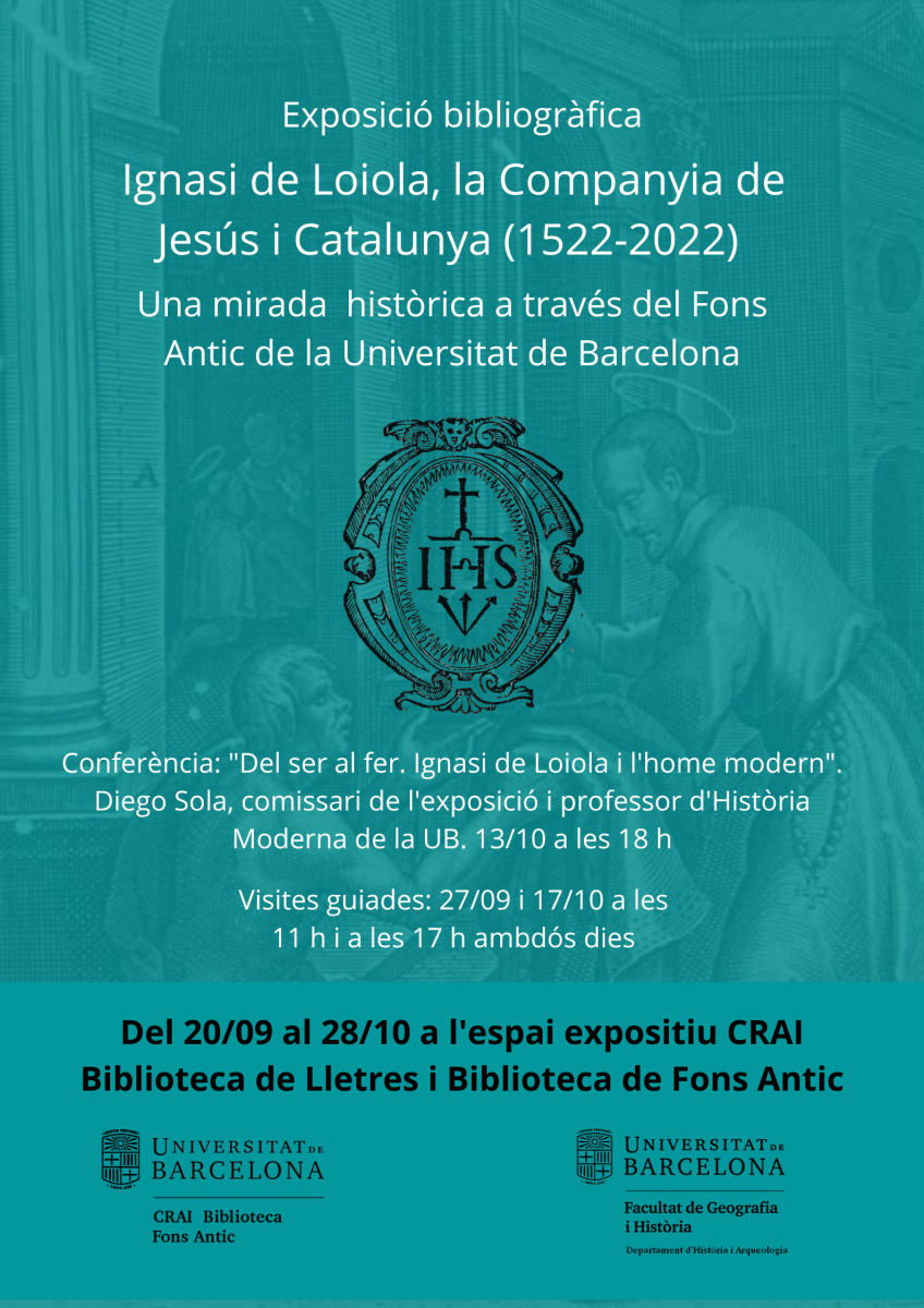 Aprofitant l’avinentesa, l’exposició que us presentem tot seguit posa en valor el ric patrimoni bibliogràfic i documental del Fons Antic de la Universitat de Barcelona, així com s’endinsa, a través de les fonts –impreses i gràfiques– en un viatge pels orígens del fenomen ignasià i jesuïta, com també en la seva petja a Catalunya i el món en els segles moderns.