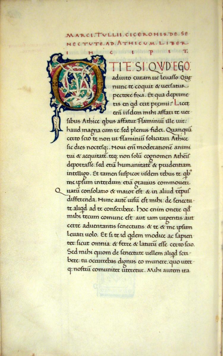 El manuscrit 12 conté l'Orator, el Brutus i el De senectute, de Ciceró, així com el De remediis fortuitorum, de Sèneca, el 358 el De officiis, De paradoxis i De somno Scipionis del mateix autor, mentre que en el 752 trobem les Polítiques i Econòmiques d'Aristòtil, en versió llatina de Leonardo Bruni d'Arezzo.