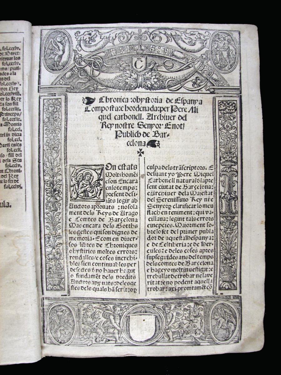 Exemplar incomplet: falta el f. J1, enquadernació en pergamí amb restes de tanques de botó (s. XVI/XVII). Portada mutilada amb afectació del text, quaderns G-J ratats, f. J8-J10 pràcticament destruïts, forats d’insectes, acidesa, taques d’humitat. Ex-libris manuscrit parcialment llegible a la portada: “Est Bartholome[…]” (s. XVII), procedeix del convent de Santa Madrona de Barcelona (segons el llom i localitzat al catàleg ms 1502 amb signatura S 4).