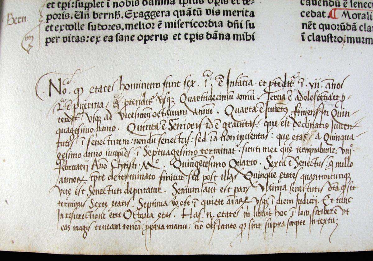 De la mà de Pere Miquel Carbonell: notes sobre el contingut del volum i sobre la compra d'un llibre al f. de guarda anterior, inicials simples en vermell i blau, calderons, manícules i fistons, claus, trèvols, signes de crida, postil·les i foliació.