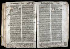 Exemplar incomplet: falta el quadern a i els f. b1-b2, b8, d1, i1, t2, I1, j1, j7-j8. Enquadernació en pergamí sobre cartró (s. XVII), guillotinat, talls pintats, f. n2 relligat abans del f. n1. F. b3 i j6 mutilats, amb afectació del text. Forats d'insectes, acidesa, taques d'humitat. De tres mans dels segles XVI i XVII/XVIII: manícules, proves cal·ligràfiques i algunes postil·les.