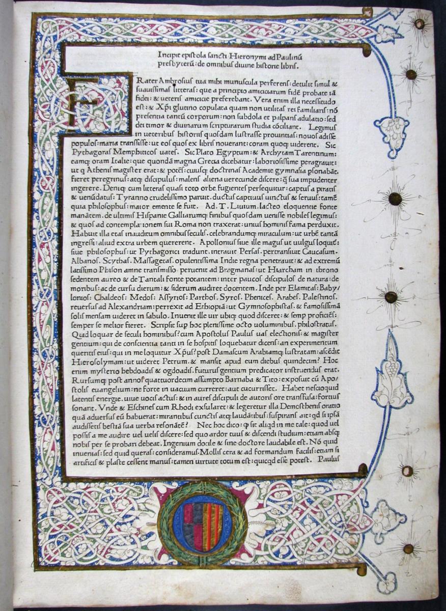 Bíblia, Roma: Konrad Sweynheim i Arnold Pannartz, 1471, Inc 2, Procedeix del convent de Sant Josep de Barcelona.