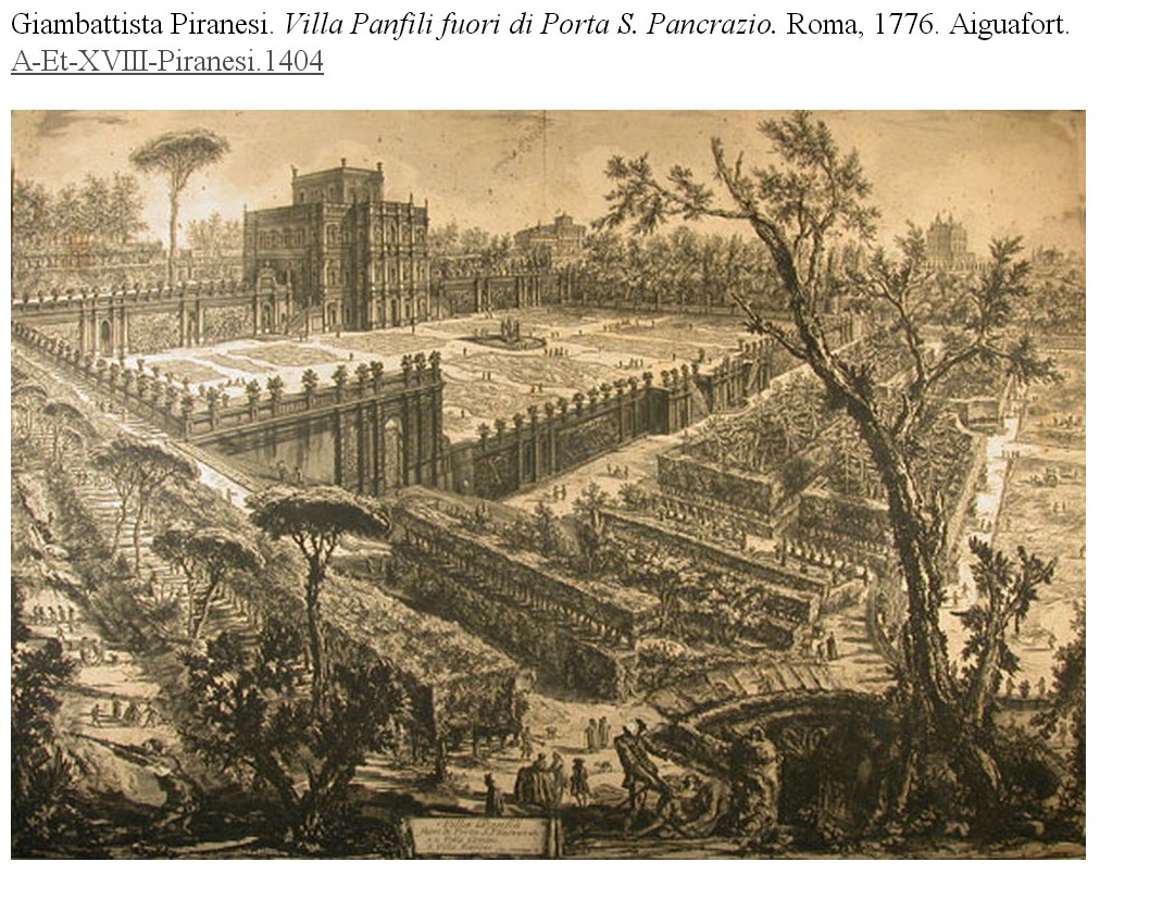 Clou l'exposició un exemplar de la important col·lecció de gravats i estampes de la Biblioteca de la Universitat. Molts dels gravats de la col·lecció provenen d'una donació de duplicats de la Biblioteca Nacional de Madrid. El que presentem és un gravat de l'arquitecte i gravador Giambattista Piranesi, Villa Panfili fuori di porta S. Pancrazio, que forma part de la col·lecció de Vedute di Roma, publicada des del 1746. Aquest gravat no porta el segell de la Biblioteca Nacional i això, junt amb el fet de ser un gravat italià, fa pensar en la possibilitat que provingui dels fons de fr. Tomàs Ripoll que sabem que donà també gravats.