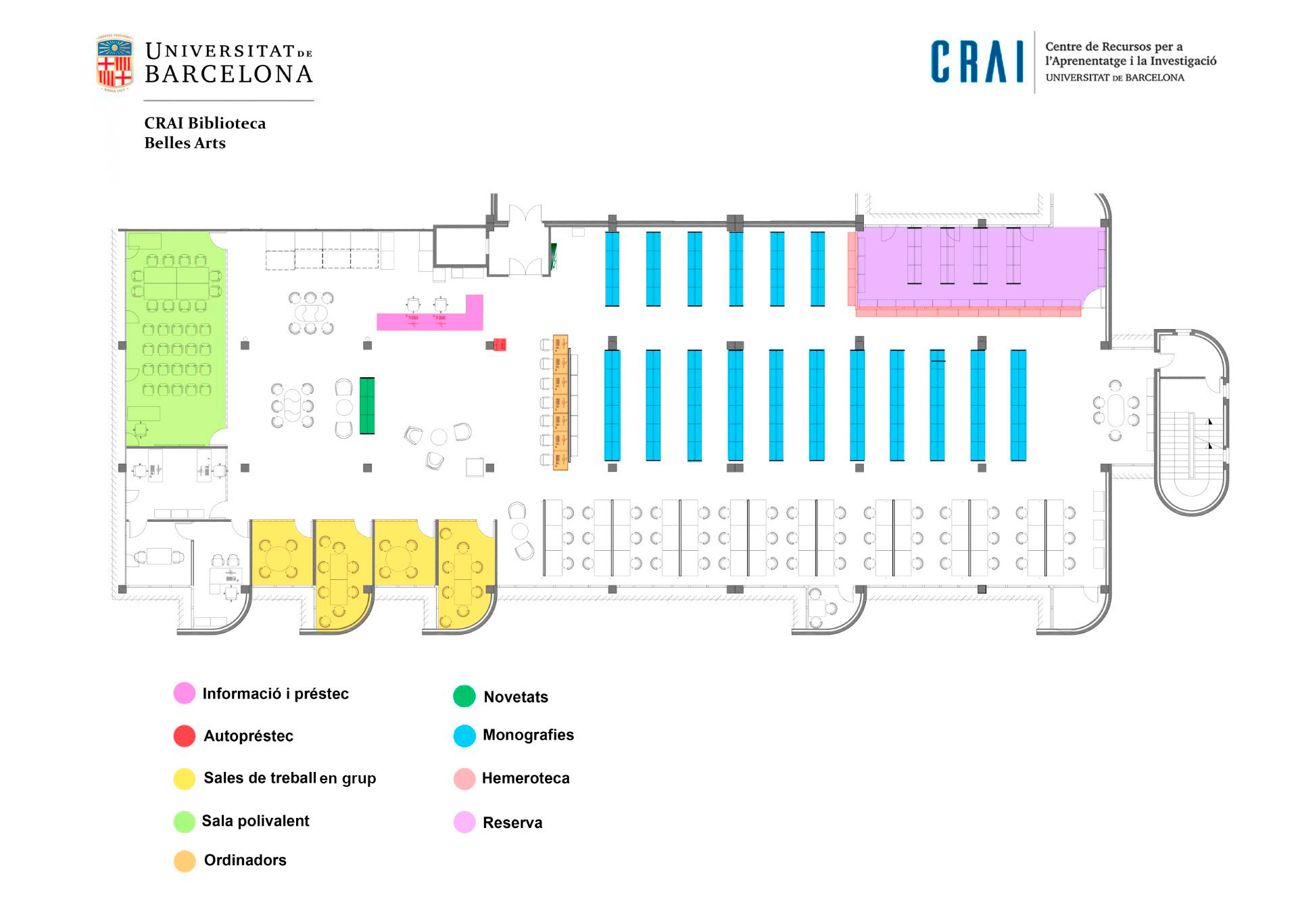 El CRAI Biblioteca de Belles Arts ofereix els fons bibliogràfics de suport als programes docents i de recerca dels ensenyaments impartits a la Facultat: Belles Arts, Conservació i Restauració, i Disseny.