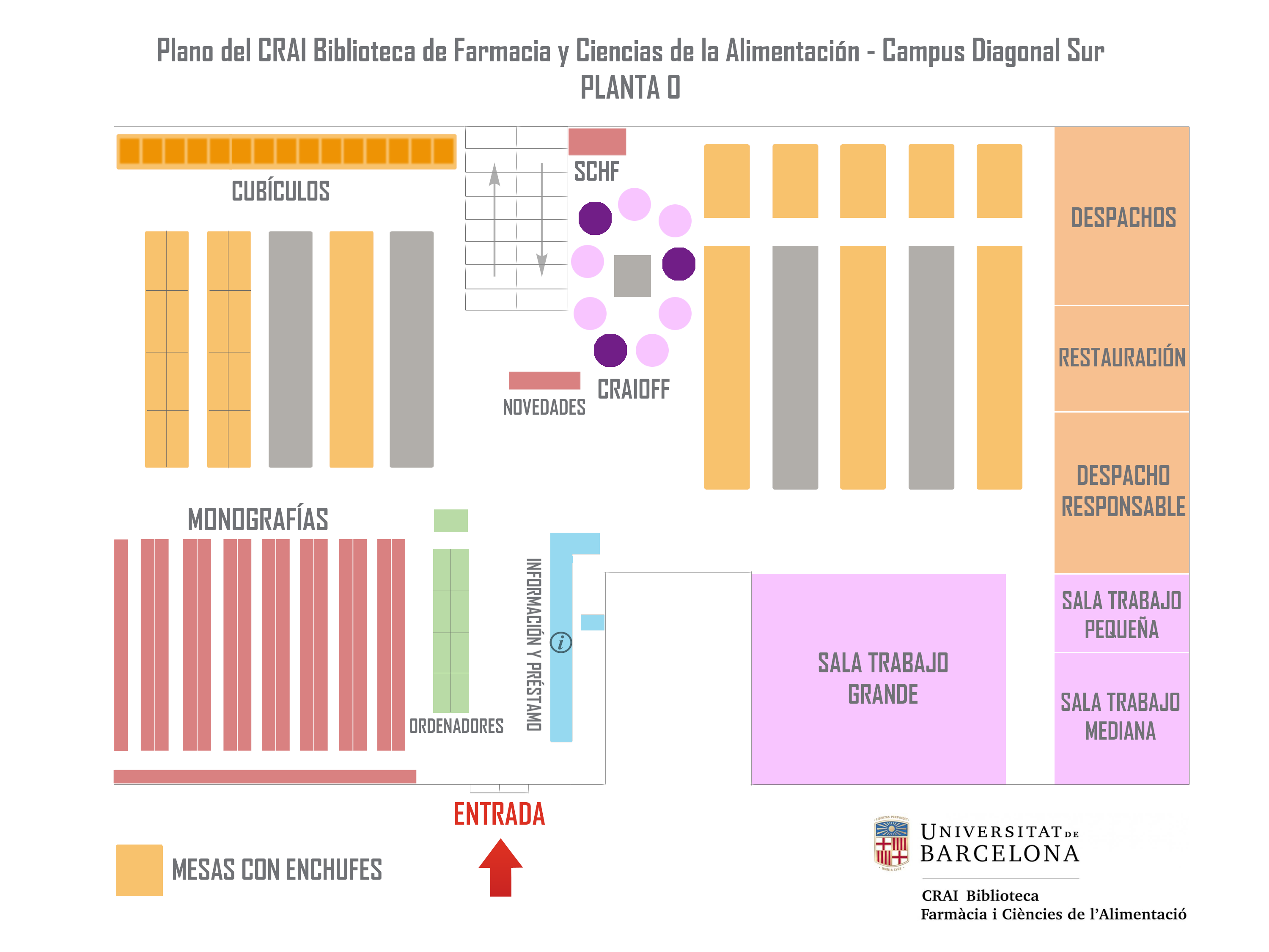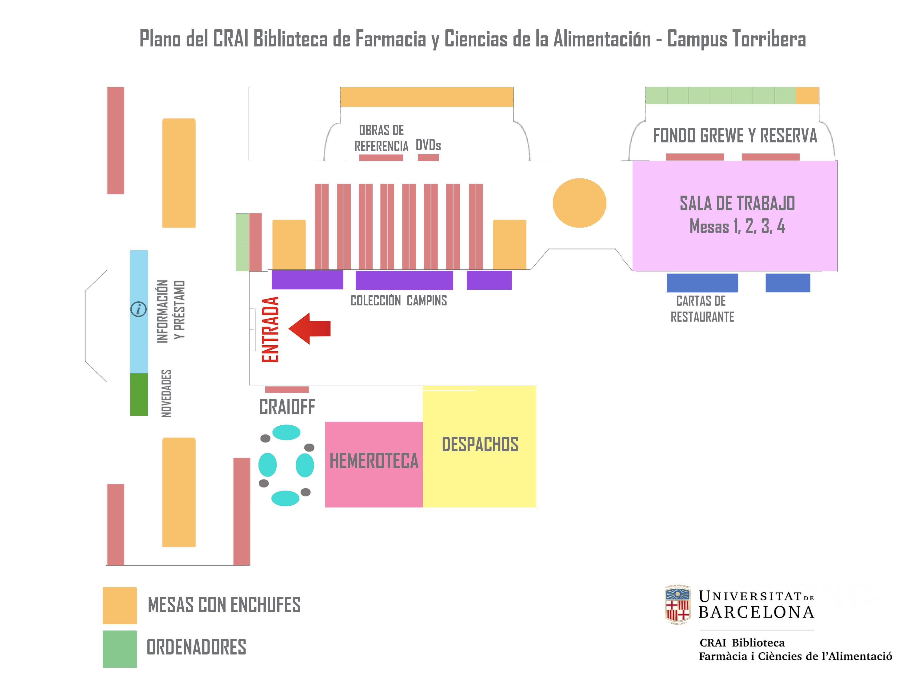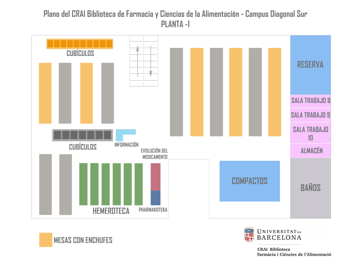 - la situada en el edificio B de la Facultad de Farmacia y Ciencias de la Alimentación del Campus Diagonal Sud, denominada Biblioteca Creu Casas i Sicart, que acoge la documentación sobre el medicamento en todas sus vertientes