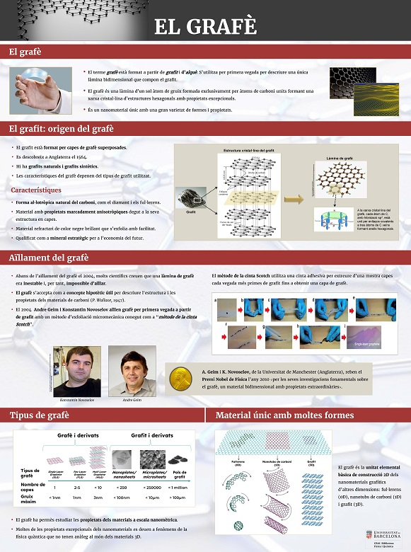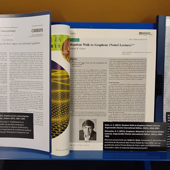 El CRAI Biblioteca de Física i Química ha organitzat l’exposició bibliogràfica «El Grafè: 20 anys del seu aïllament» per commemorar el vintè aniversari de l’aïllament d’aquest extraordinari material per Andre Geim i Konstantin Novoselov, físics de la Universitat de Manchester (Gran Bretanya).