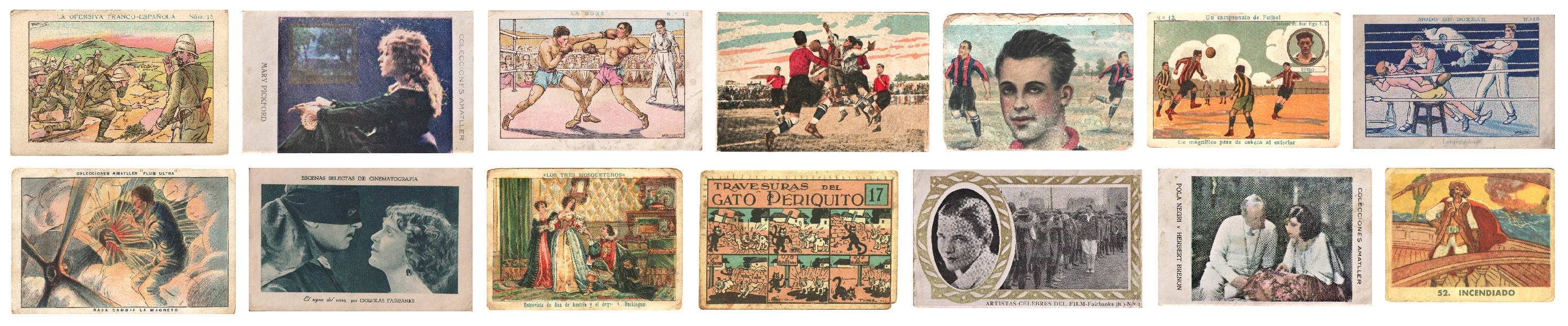 Després trobem les col·leccions Veinticuatro películas de Charlot (que mostra tires còmiques protagonitzades per Xarlot) i Travesuras del gato Periquito (de format molt similar, però amb una còpia de Fèlix el Gat com a protagonista), de les quals només tenim un cromo. Ambdues estan il·lustrades per Tínez i daten d’entre les dècades de 1920 i 1930.