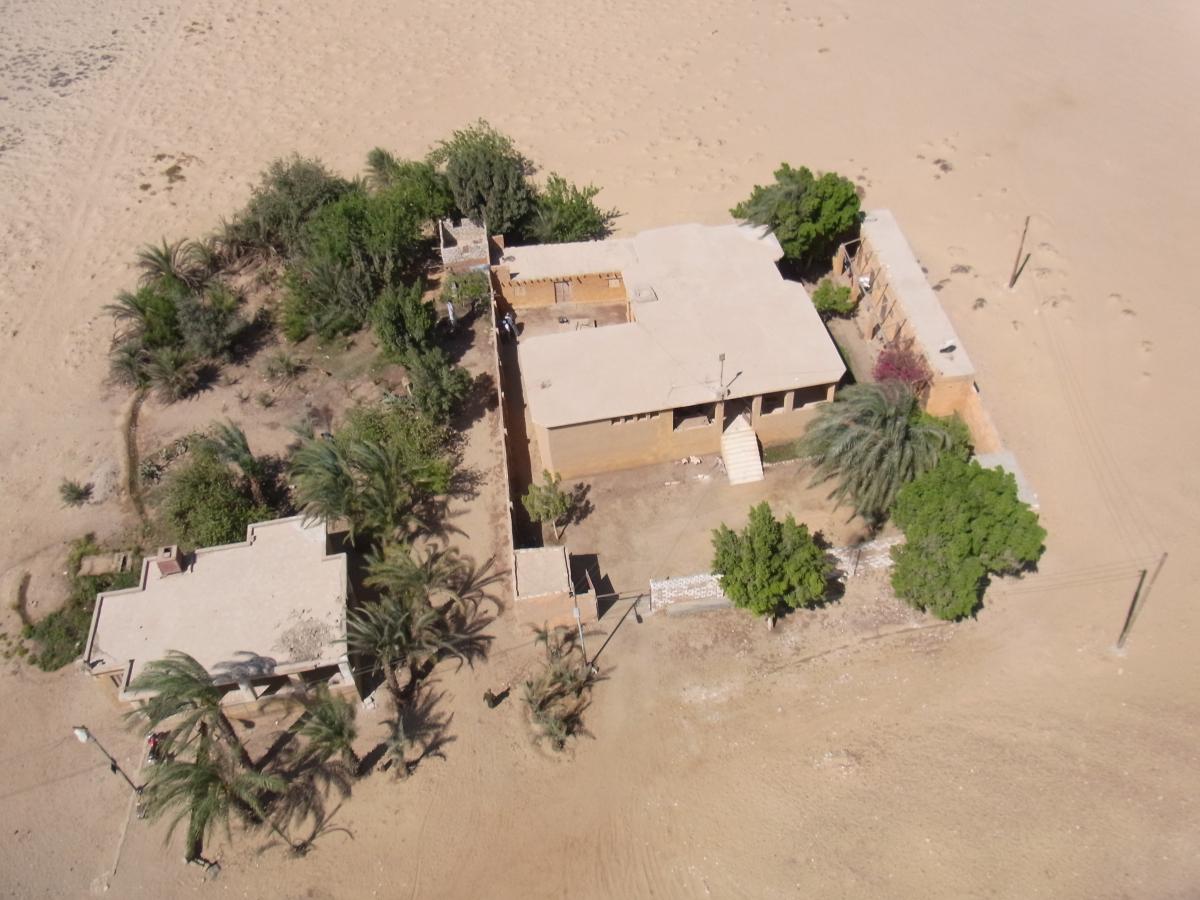 Vista aèria de la casa de la Missió Arqueològica d’Oxirrinc