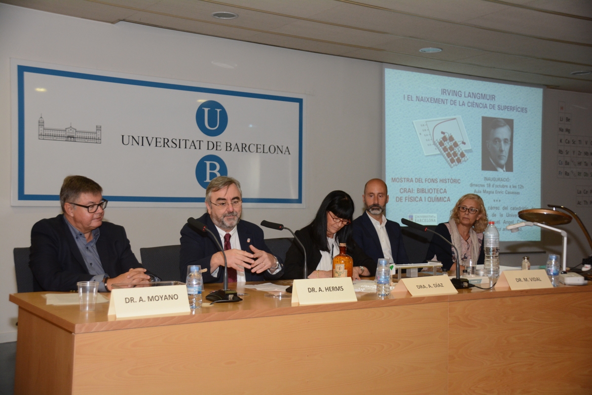 Durant l’acte, presidit per la Vicerectora de docència i ordenació acadèmica, Dra. Amèlia Díaz, el Dr. Miguel Cabrerizo, catedràtic de Física Aplicada de la Universidad de Granada, va dictar la conferència Langmuir, un científico americano. També van participar en l'acte el degà de la Facultat de Física, Atilà Herms, el degà de la Facultat de Química, Miquel Vidal, el president de la Comissió d’Usuaris de la Biblioteca, Albert Moyano, i la cap del CRAI Biblioteca de Física i Química, Isabel Parés.