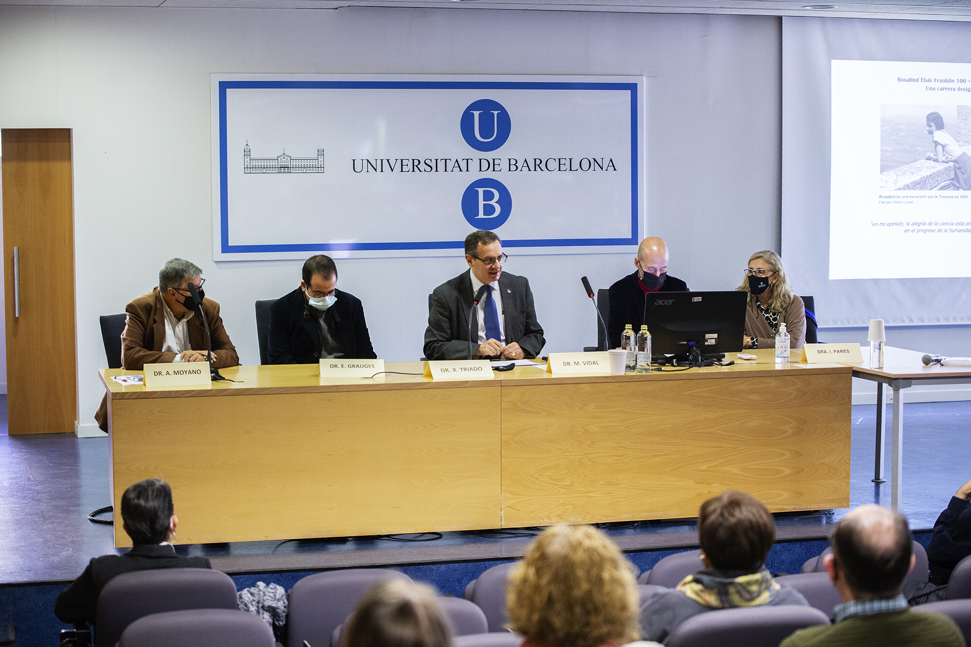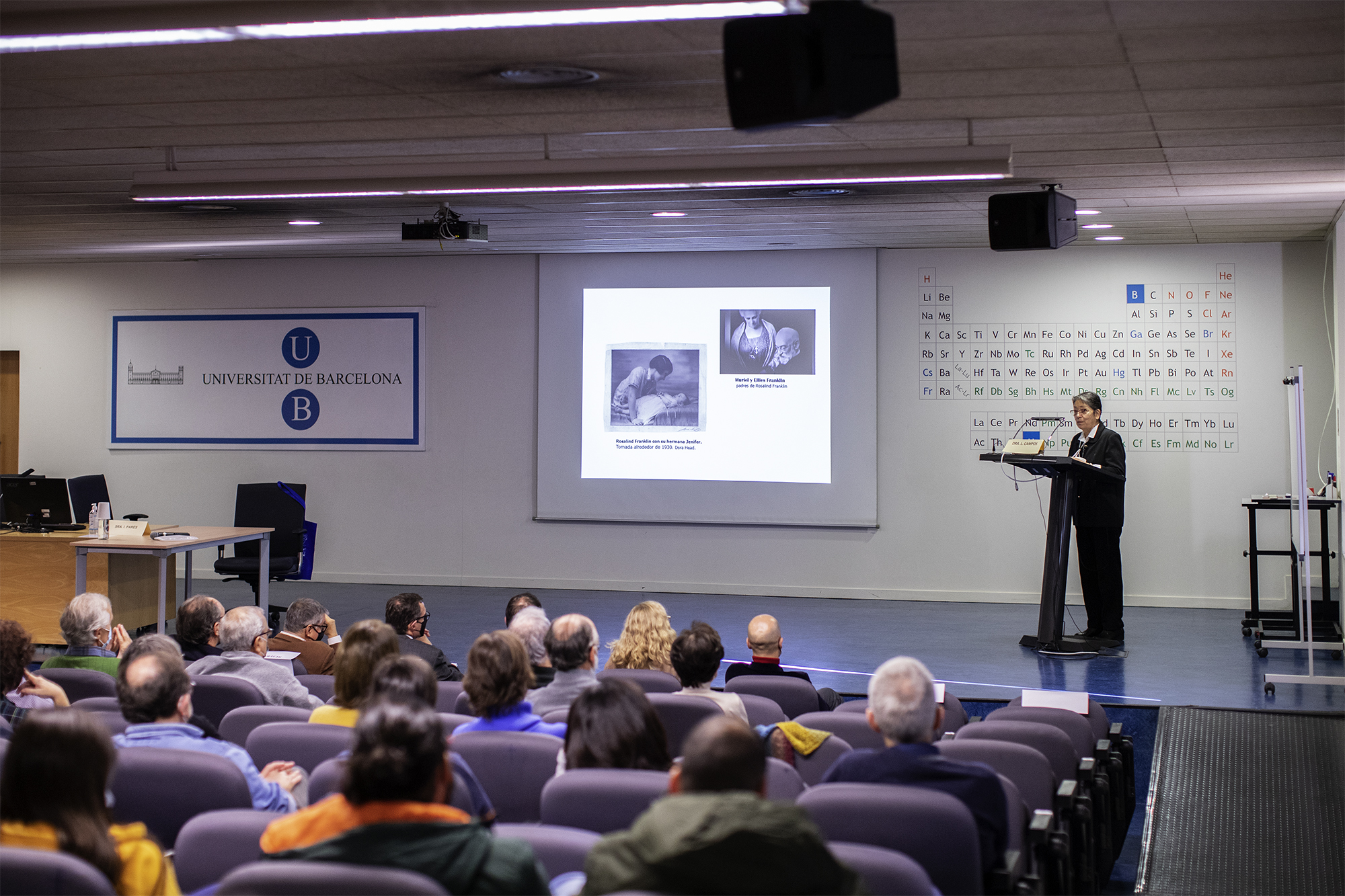 L’acte, presidit pel vicerector de transformació digital de la Universitat de Barcelona Dr. Xavier Triadó, es va inaugurar amb la conferència a càrrec de la farmacèutica i cristal·lògrafa, professora de la UPC Dra. Lourdes Campos amb el títol: Rosalind Elsie Franklin 100 anños después. Una carrera desigual. També van participar a l'acte el degà de la Facultat de Química, Dr. Miquel Vidal, el degà de la Facultat de Física, Dr. Eugeni Graugés, el president de la Comissió d’Usuaris de la Biblioteca, Dr. Albert Moyano, que va fer la presentació de l'acte, i la cap del CRAI Biblioteca de Física i Química, Sra. Isabel Parés.