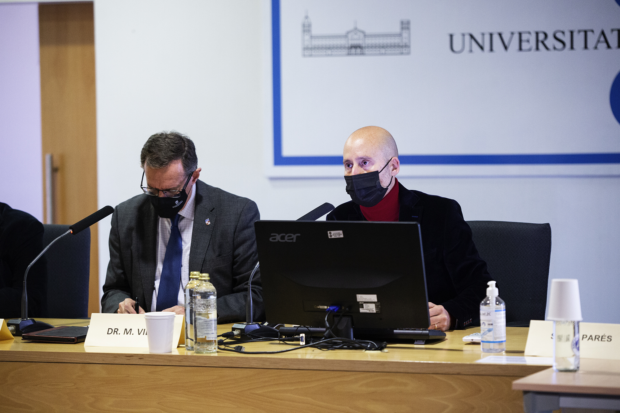 En acabar l'acte, els assistents es van traslladar a la Biblioteca on es va inaugurar in situ l'exposició i hi va haver, a l'atri de les Facultats, un petit refrigeri.