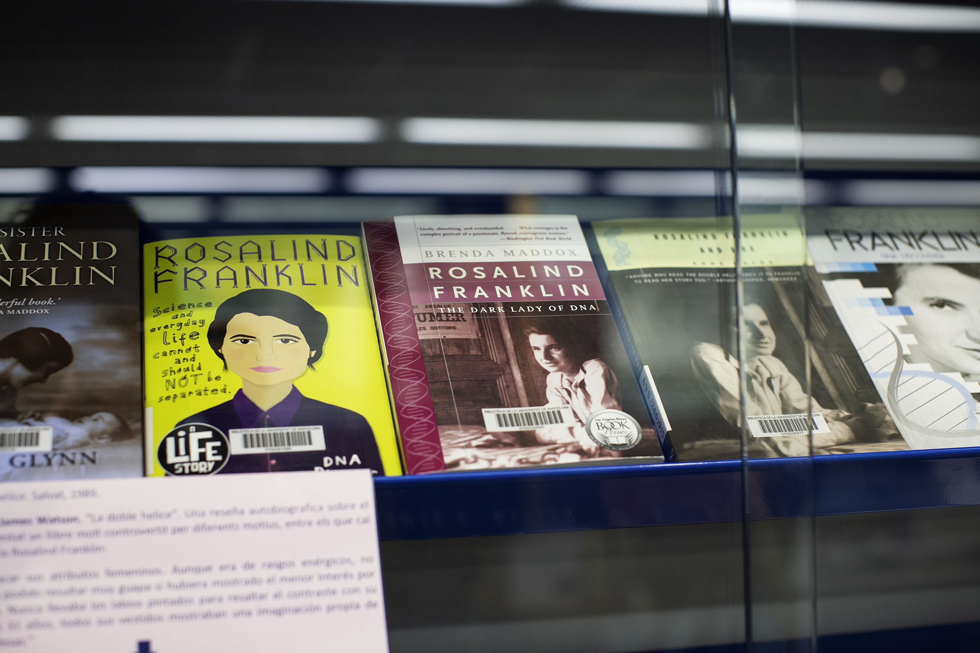 Organitzada cada any sobre un tema específic, en aquesta ocasió ha estat el centenari del naixement de la química i cristal·lògrafa Rosalind Franklin, científica clau en la descoberta de l'estructura de l'ADN, però menystinguda i oblidada durant molts anys. En aquesta exposició es reivindica la seva figura i també hi ha una selecció de llibres relacionats amb dones i ciència que ajuden a comprendre i reivindicar el concepte d'injustícia epistèmica que han sofert les dones des de sempre.