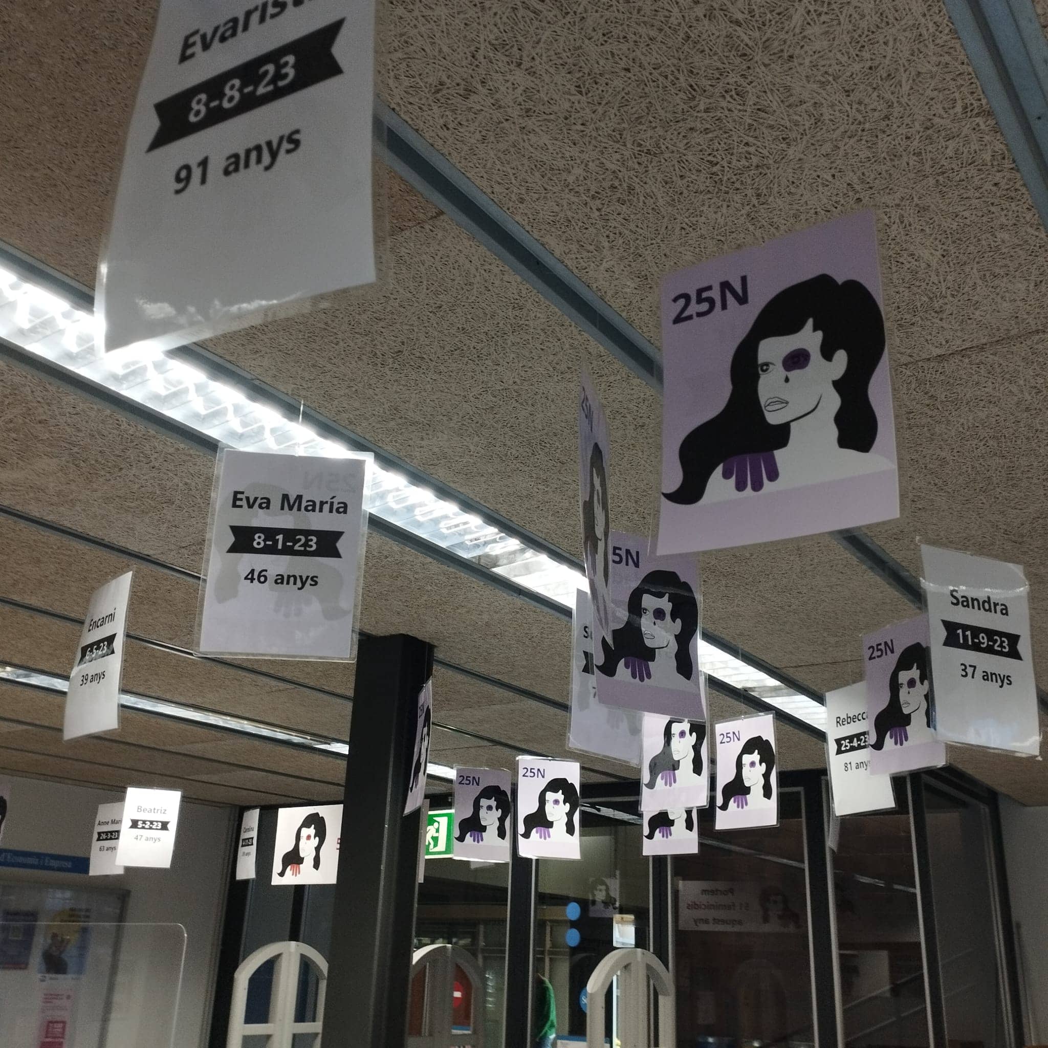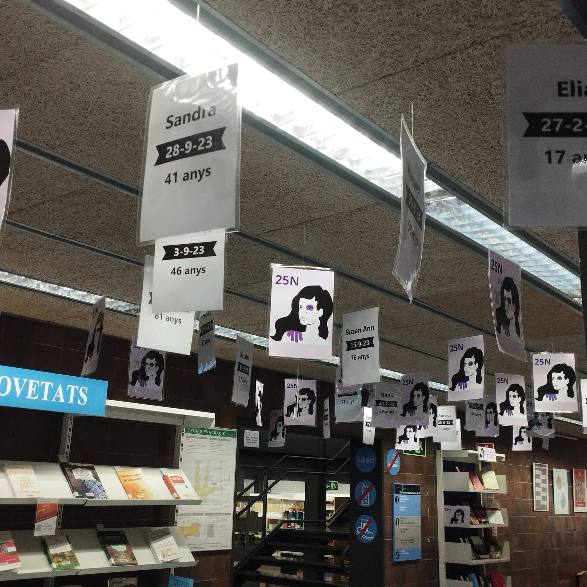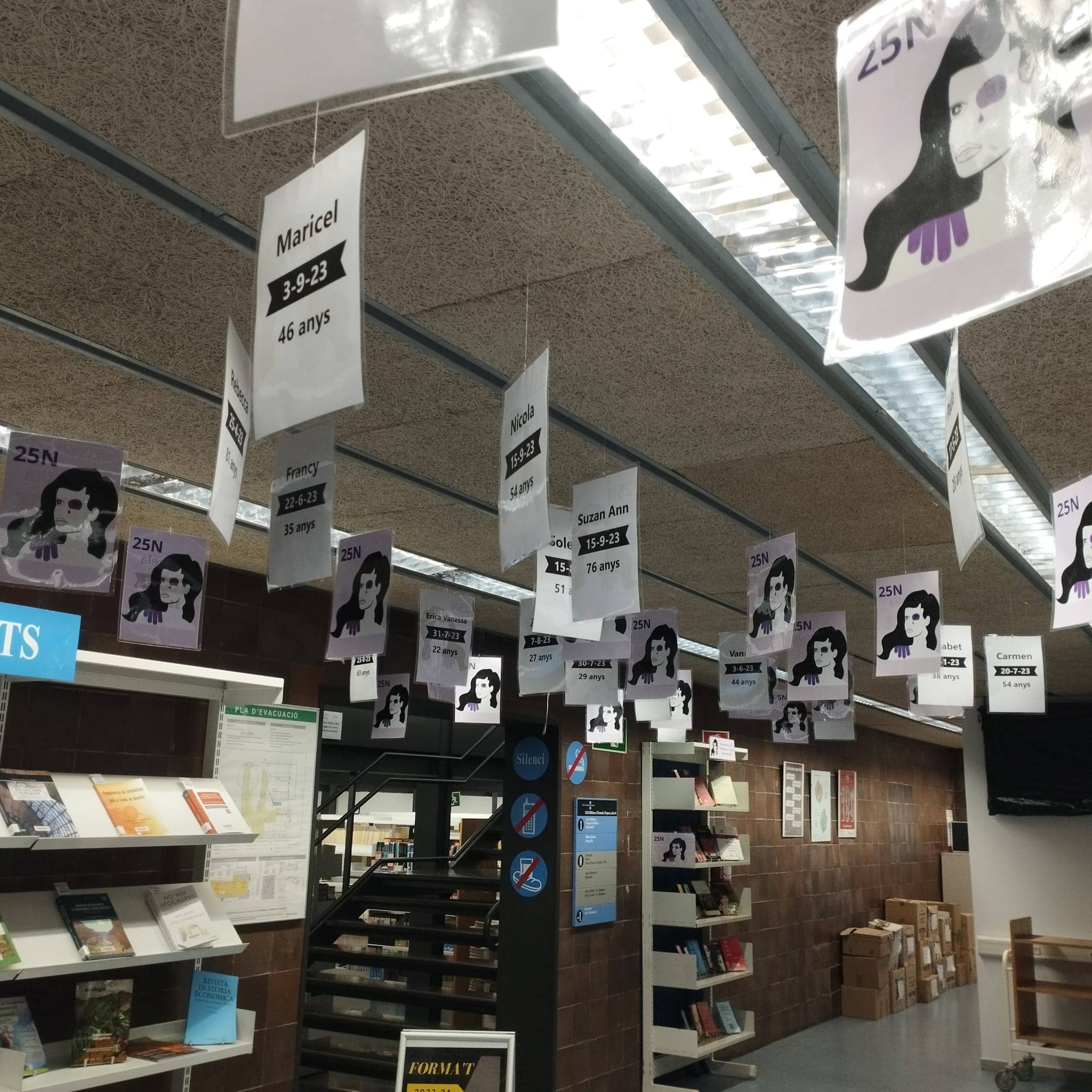 Portem 51 feminicidis íntims oficials aquest any, 51 cartells amb els noms propis, la data de la mort i la seva edat pengen del vestíbul de la biblioteca de Recerca, damunt dels caps de tothom qui passa per tal que prenguem consciència d’aquesta xacra social.