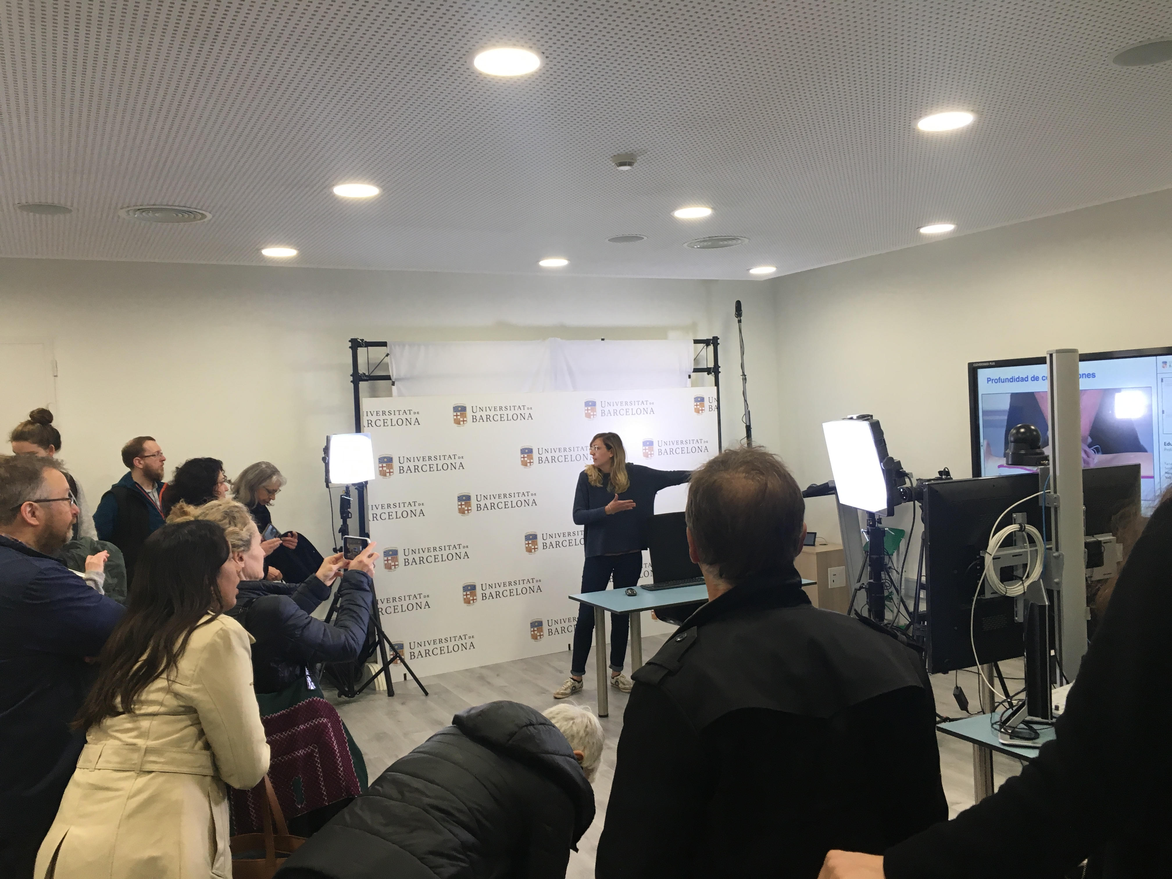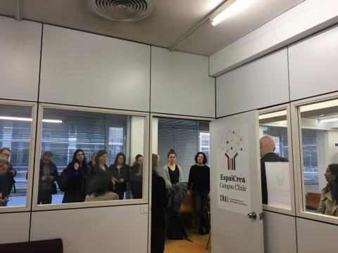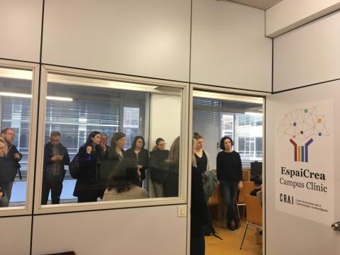 El grup DIGE ha visitat, a més del CRAI, diferents serveis del Campus Clínic com l'estudi de gravació i algunes sales i laboratoris de simulació mèdica. La Dra. Roser Sala Llonch, professora del Grau d'Enginyeria Biomèdica, responsable del PAT i de dues assignatures relacionades amb el processat d'imatges, ens ha pogut acompanyar per explicar i resoldre dubtes que han plantejat alguns assistents sobre la utilitat d'aquest equipament d'impressió 3D dins el Pla d'Estudis.