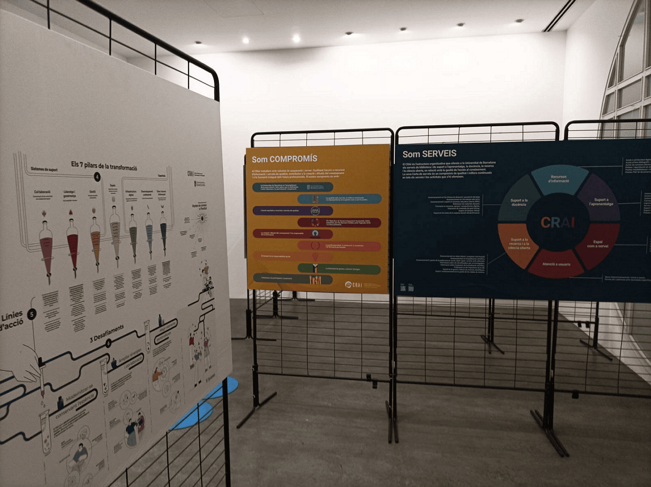 L’exposició ofereix un viatge a través de l’evolució i el creixement del CRAI, des dels seus inicis fins a l’actualitat. A través de diferents panells i materials visuals, els visitants podran descobrir com han evolucionat els serveis, els recursos i el fons patrimonial, així com el seu paper en la comunitat universitària, les seves aliances estratègiques i el seu compromís amb la ciència oberta i la innovació.