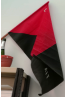 El CRAI Biblioteca del Pavelló de la República ha cedit material per a ser exposat. Hi podeu veure una bandera de la CNT-AIT que duia un carter quan repartia correu en bicicleta durant la Guerra Civil i que es custodia a l’arxiu. També veureu la bandera republicana que onejava a l’Ateneu Santboià (Sant Boi del Llobregat) durant la Segona República i que forma part de la col·lecció de material divers dels nostres fons.