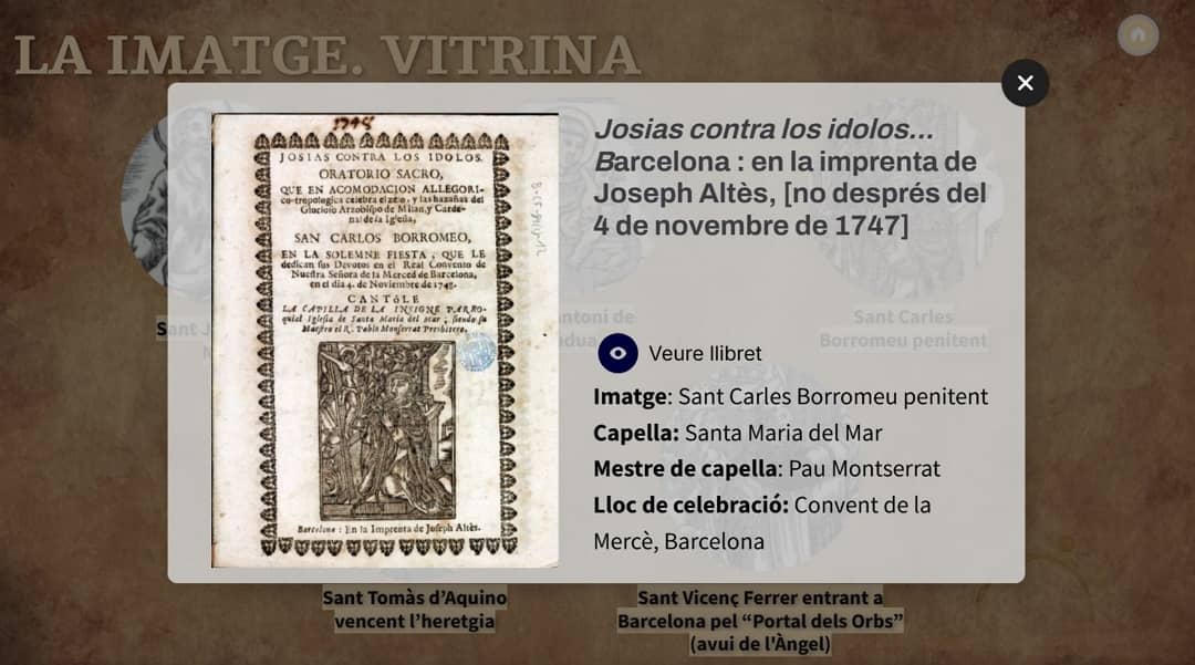 Ara tens l’oportunitat de submergir-te virtualment en aquest gènere i comprovar com el llibret d’oratori exemplifica l’ús de la intermedialitat a la Barcelona d’època moderna, ja que música, text i imatge convergeixen en un gènere literari d’àmplia difusió.