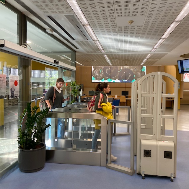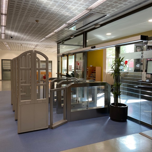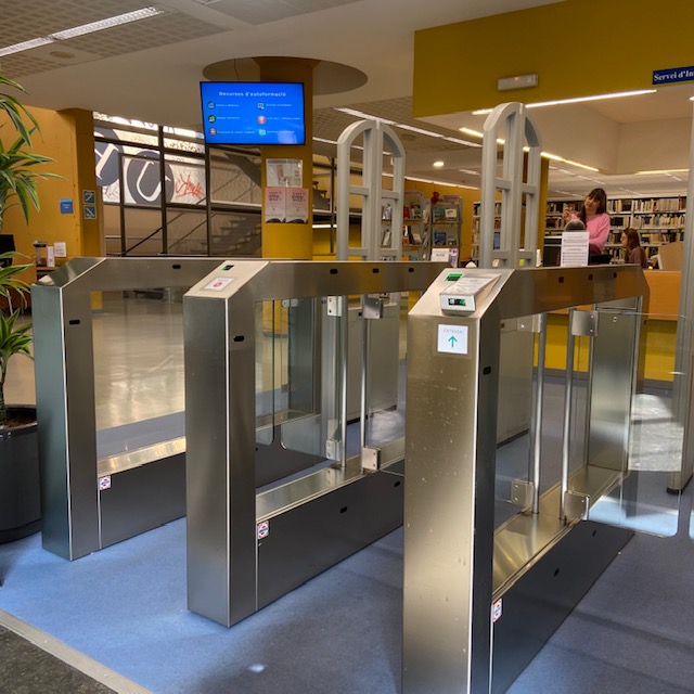 Els nous torns d’accés són més lleugers, estrets i silenciosos. S’han pogut distribuir en tres accessos independents, dos d’entrada i un de sortida, i s’ha mecanitzat la porta contigua, més àmplia, per facilitar l’accés a les persones amb necessitats especials. Una novetat important dels torns és que llegeixen els nous carnets digitals!