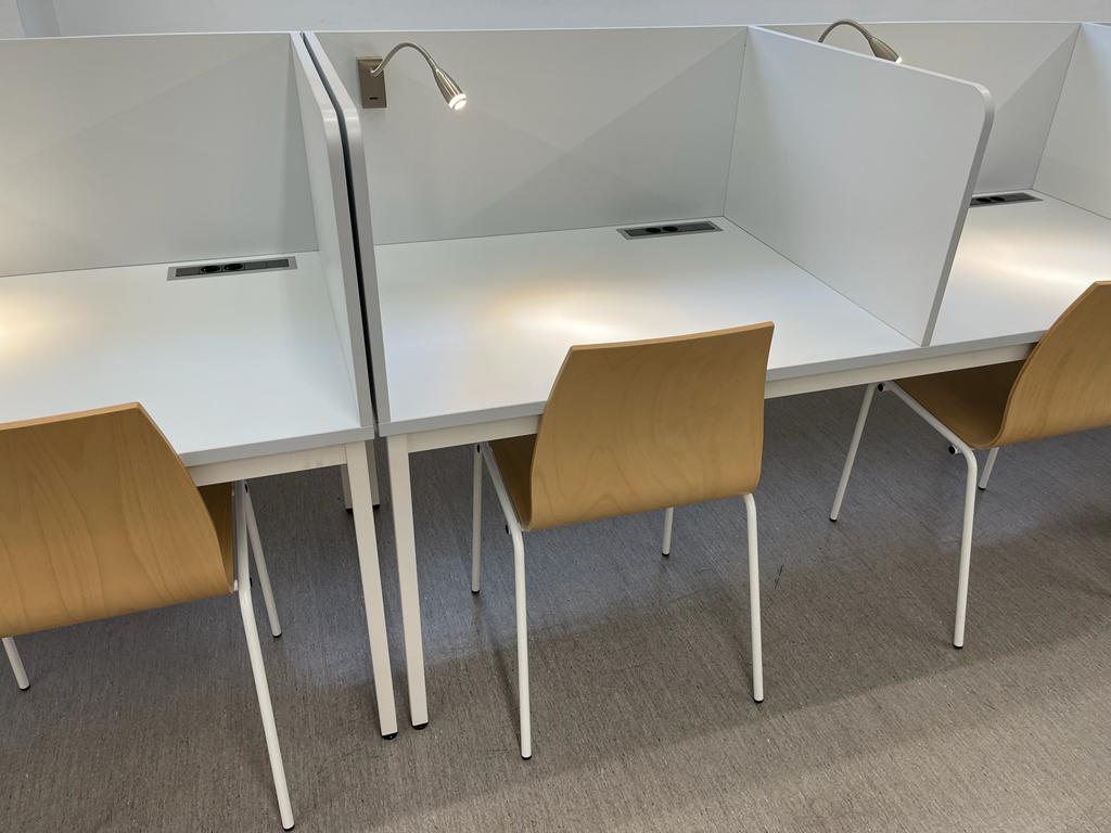 Actualment el CRAI biblioteca disposa de 32 cubicles, 15 a la planta baixa i 17 a la planta -1.  25 d'aquests llocs de treball compten amb un llum de lectura propi i dos endolls cadascun.