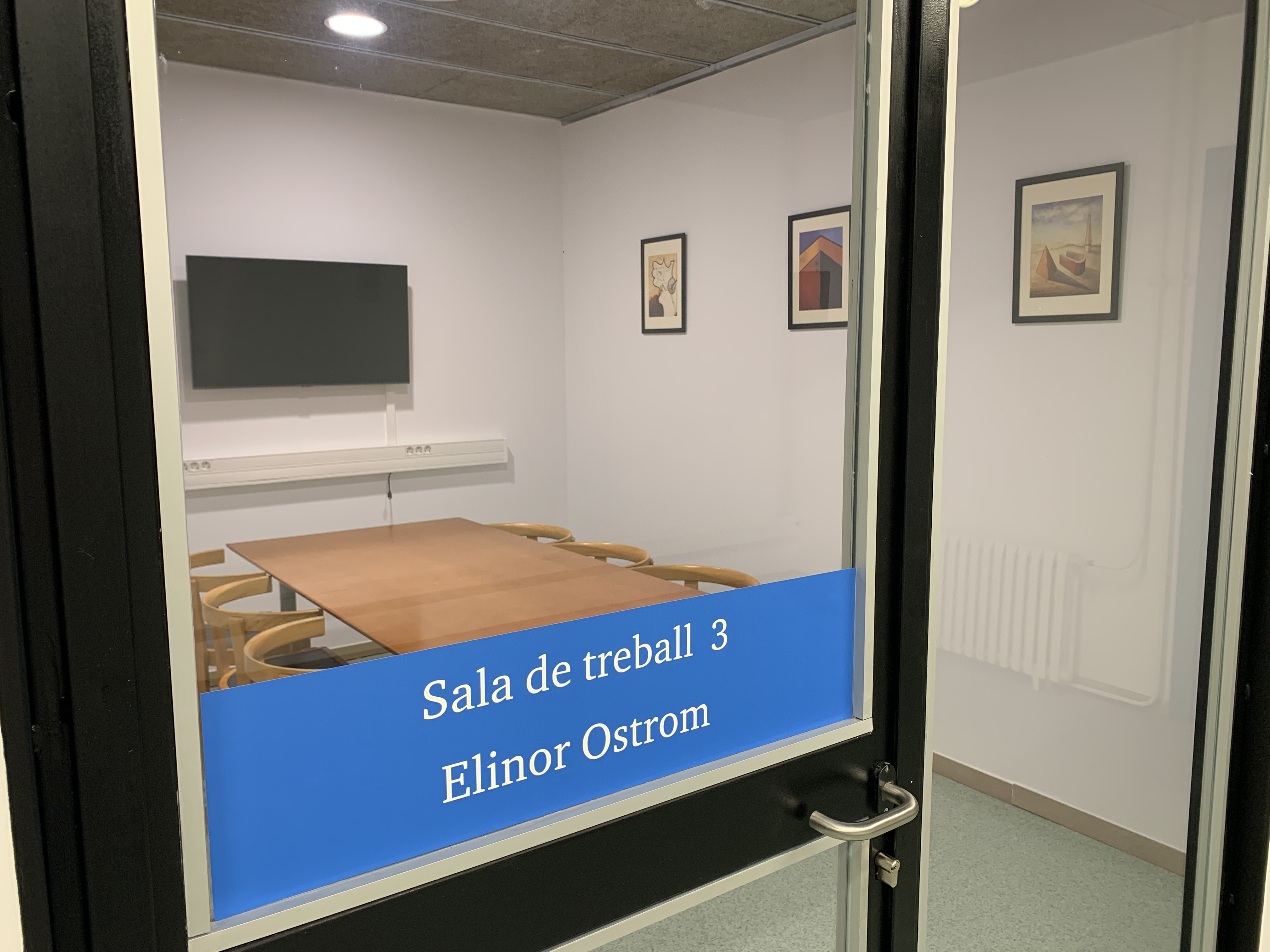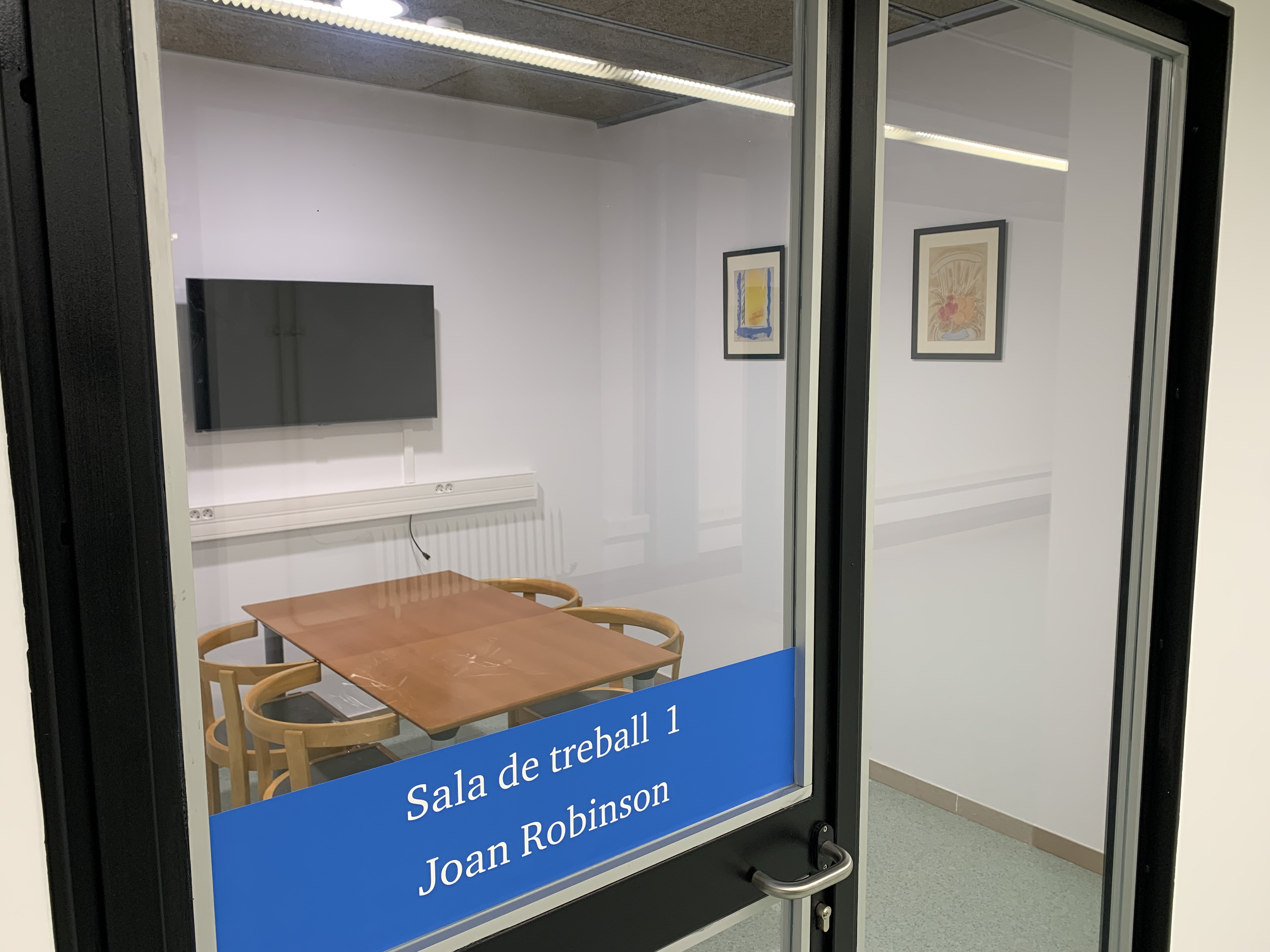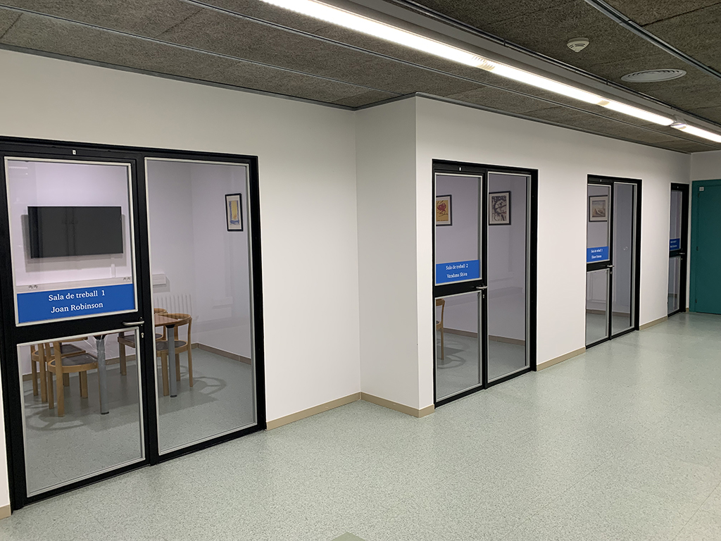 Les sales porten el nom de diferents dones economistes: Joan Robinson, Vandana Shiva, Elinor Ostrom i Miren Etxezarreta, noms finalistes al concurs que vam fer el març de 2020, just abans del confinament.