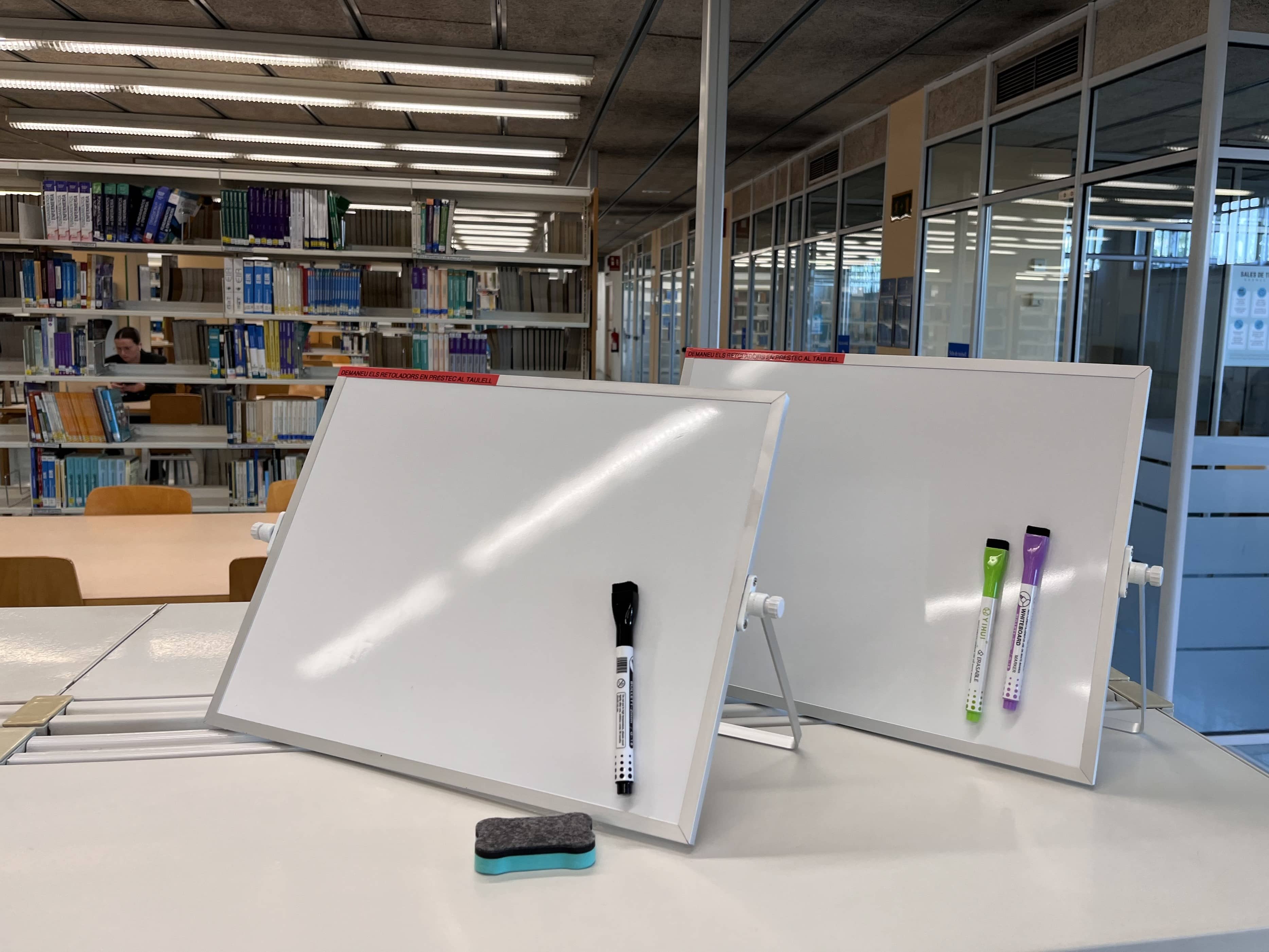 Aquestes pissarres portàtils estan disponibles a sala a l'abast dels usuaris, que poden utilitzar-les lliurement en qualsevol espai de la biblioteca sense cap requisit de préstec.